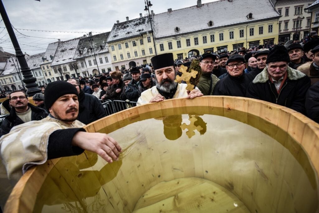 Clericii au împărţit câteva sute de sticle cu apă sfinţită, iar cei care nu au ajuns în Piaţa Mare îşi pot lua aghiazmă de la Catedrala Mitropolitană. Biserica Ortodoxa celebrează în această zi botezul lui Iisus în râul Iordan de către proorocul Ioan Botezatorul.
