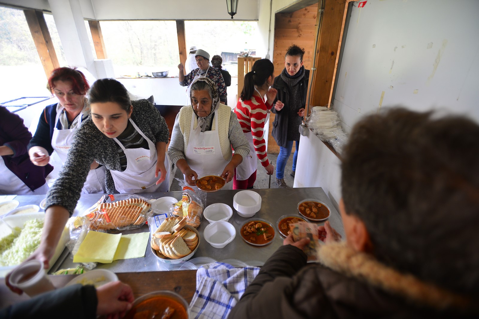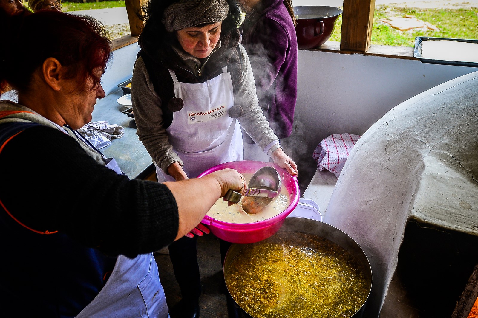 ”Datorită târgului de gastronomie pe care l-am organizat în Târnăvioara în urmă cu o lună și a brunch-ului organizat tot atunci, am considerat oportun ca tot ce s-a promovat în cadrul proiectului Centrul European al Diversității Europene să fie văzut și în Sibiu, în Muzeul ASTRA, astfel încât doamnele care au participat la atelier au venit și au gătit pentru spectatorii din Sibiu”, a declarat Anca Nițoi, reprezentatnt AIOS, asociația care a implementat în Târnăvioara proiectul Centrul European al Diversității Europene.foto/video Silvana Armat”Există un grup de sprijin, cam 20 de oameni din Târnăvioara care s-au implicat mai activ în acest proiect, care au înțeles fenomenul, și mai avem și ajutorul vecinătății din sat. Au venit oameni din Târnăvioara să gătească și să-și vândă produsele și ne-am gândit că cel mai bun public e chiar comunitatea lor. Din acest motiv, i-am invitat aici. Noi am asigurat transportul, iar ei și-au donat o parte din timp pentru a fi alături de comunitatea din Târnăvioara.