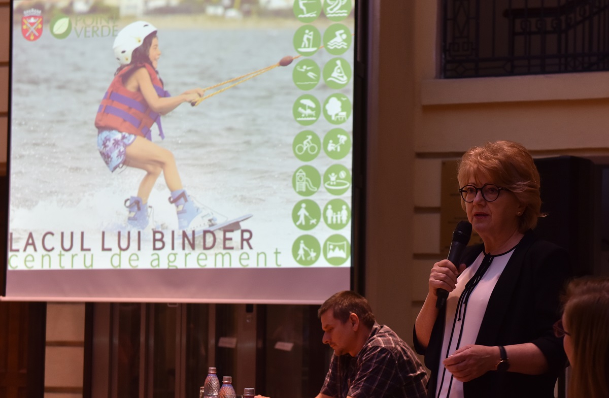 ”Era timpul să investim în această zonă”, au fost printre primele cuvinte ale primarului Astrid Fodor, în fața câtorva zeci de sibieni care au participat, marți seară, la prezentarea planurilor de investiții care ar urma să schimbe zona Lacului lui Binder într-un centru de agrement.