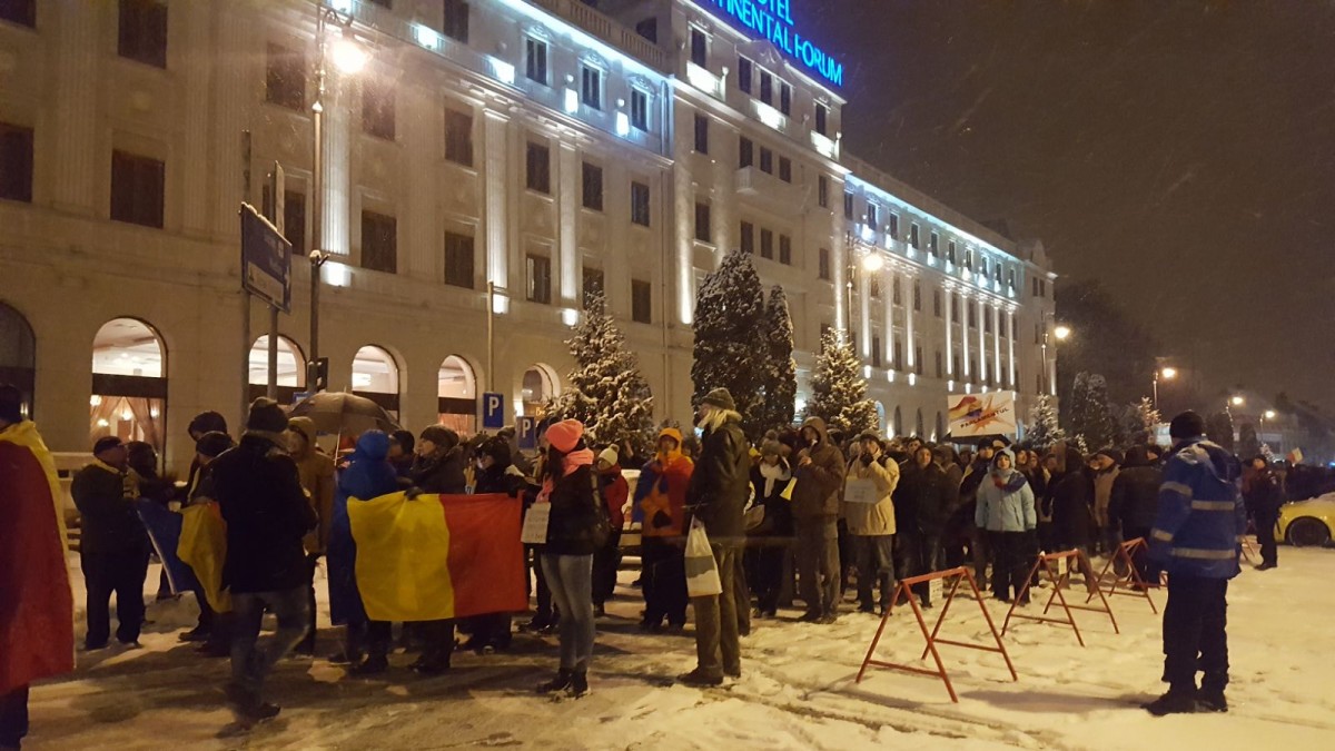 În ciuda celor cel puțin cinci grade sub zero, sute de sibieni au ieșit din nou duminică seara pentru a protesta împotriva tentativelor de subordonare a Justiției de către actuala putere politică.