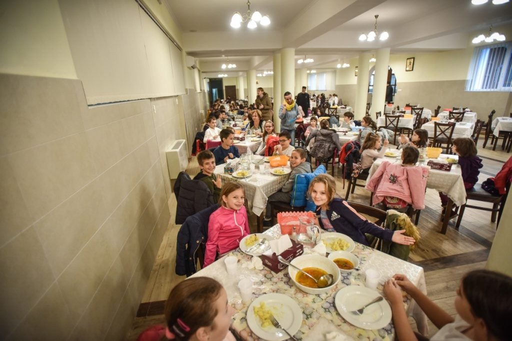 Astăzi se împlinesc exact 2 luni de când a fost inaugurată cantina școlară „Sfântul Stelian” din cadrul Școlii gimnaziale nr. 15, construită de Arhiepiscopia Sibiului. Ne-am propus să vedem cum funcționează lucrurile acolo și ce mănâncă elevii sibieni.