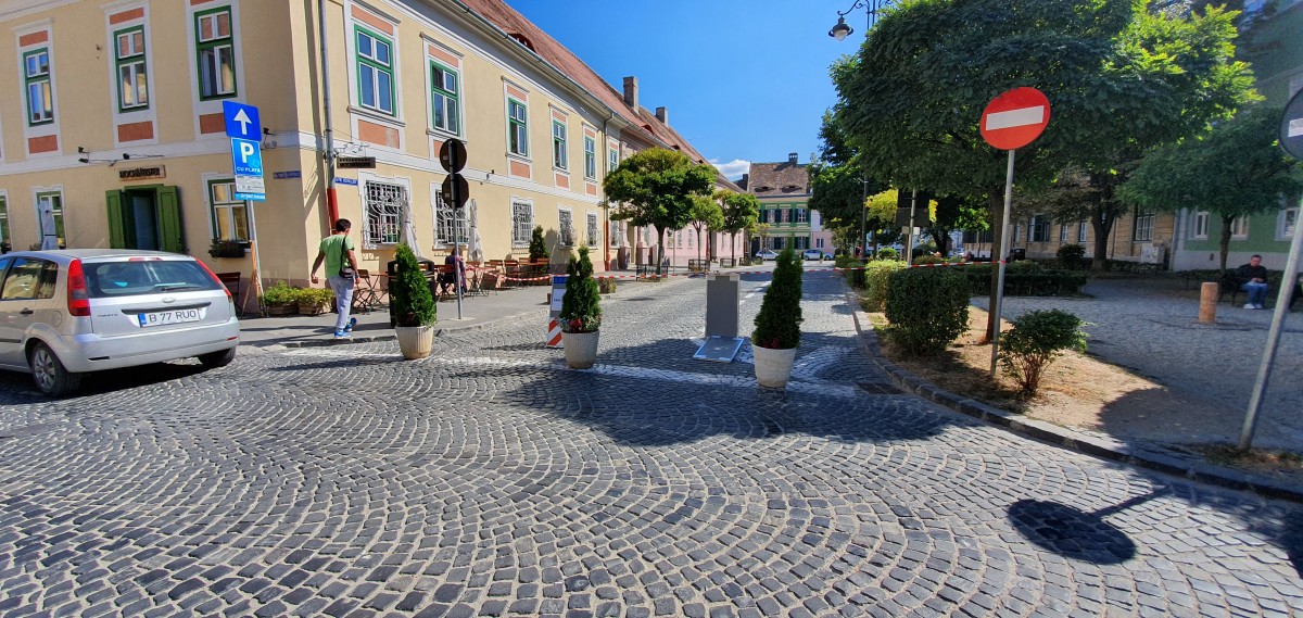 La fel ca și în capetele străzii Centumvirilor, autoritățile locale au amplasat ghivece cu flori pentru a bloca accesul mașinilor și pe scurta stradă a Arhivelor, dar și în Piața Schiller. ”E mai respirabil aerul. Altfel, aici ai fi văzut doar mașini”, își dă cu părerea un sibian care își turna a doua bere pe o terasă din zonă. Traficul auto este închis în aceste zone în zilele de sâmbătă și duminică, când Sibiul și-a programat evenimentele prin care participă la Săptămâna europeană a mobilității. Anul acesta sunt 3.003 localități din 50 de țări care și-au anunțat participarea la acest program.