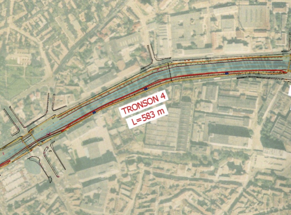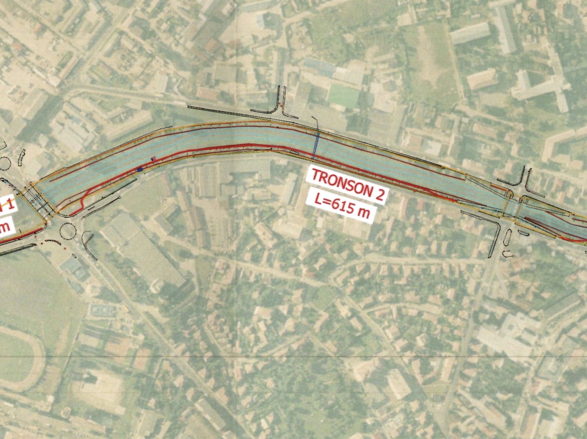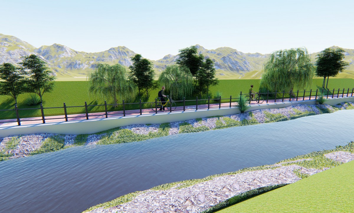 Pentru protecția împotriva apelor râului cât și pentru reducerea amprizei proiectate, pe partea stângă a pistelor de biciclete se va prevedea pe întregul tronson un zid de sprijin de debleu din palplanșe cu adâncimea minimă de 6,00 m care la partea superioară vor fi solidarizate printr-o grindă din beton armat. Pe partea dreaptă a pistelor de biciclete se va realiza un taluz cu înclinarea variabilă (1:3 - 2:3), taluz ce se va înierba și unde se vor planta arbori. Pe zonele unde spațiul liber nu permite realizarea taluzului se va realiza o protecție cu geocelule umplute cu pamânt vegetal sau un zid de sprijin de debleu din beton armat cu înălțimea elevației de 2,00 m.