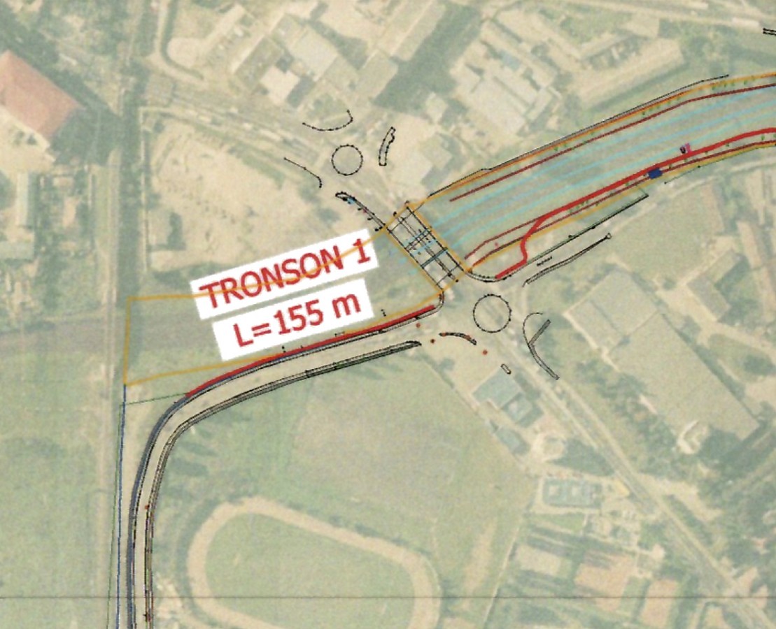 Sursa informațiilor: Studiul de fezabilitate întocmit de Urban ScopeTronson 1 în lungime de 155 m Traseul pistelor de biciclete este adiacent trotuarului stâng al străzii Maramureșului (pe direcția de mers dinspre strada Profesor Aurel Popa către șoseaua Alba Iulia). Se propune realizarea unei piste pentru biciclete în dublu sens (lățimea benzii de circulație pentru biciclete /sens fiind de 1,00 m) amplasată adiacent trotuarului stâng al străzii Maramureșului la o distanță de 0,50 m de marginea trotuarului.