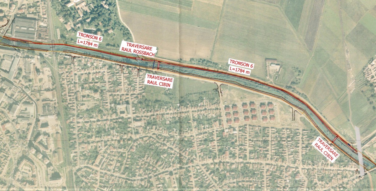 Tronson 6 în lungime de 1784 m Traseul pistelor de biciclete se desfășoară în albia majoră a răului Cibin, pe malul stâng al acestuia, având punctul de început zona podului peste Cibin de pe strada Rusciorului iar punctul final al tronsonului fiind în zona autostrăzii A1. Pe primii 120,0 m ai tronsonului, traseul pistelor de bicicletă se desfășoară la nivelul terenului iar pe restul tronsonului traseul fiind amplasat în albia majoră a râului Cibin pe malul stâng al acestuia.