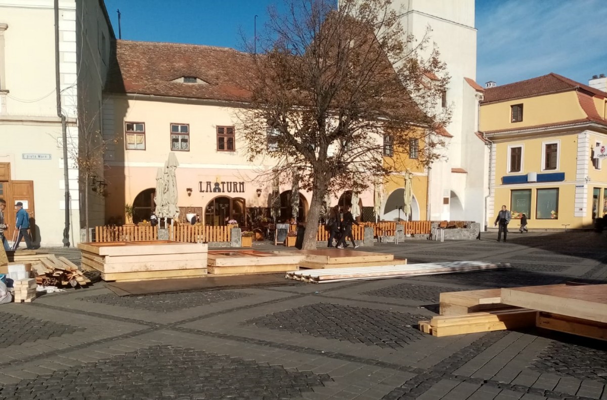 Târgul de Crăciun se va deschide oficial în 15 noiembrie. În următoarele două săptămâni se va amenaja spațiul care va găzdui concerte, expozanți și pe Moș Crăciun. Astăzi s-au adus materialele necesare pentru montarea căsuței atașate patinoarului, iar de mâine spațiul de patinat va prinde formă. De luni s-a început montarea celor 110 căsuțe pentru expozanți și s-a montant baza noului brad artificial. Bradul de anul trecut va fi amplasat în Piața Mică.