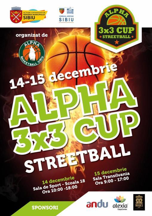 Alpha 3x3 Cup este singurul turneu de baschet 3 la 3 din sezonul rece, din Sibiu, un eveniment dedicat copiilor din categoria de vârstă U 8 , U10, U12, U14, U16 și U18. Turneul va fi organizat în perioada 14-15 decembrie 2019, începând cu ora 10:00, și va fi deschis tuturor cluburilor interesate din Sibiu și din țară. Timp de două zile, la Sala Transilvania și Școala numărul 18 se vor întrece aproximativ 50 de echipe, împărțite pe cinci categorii de vârstă, atât fete cât și băieți.