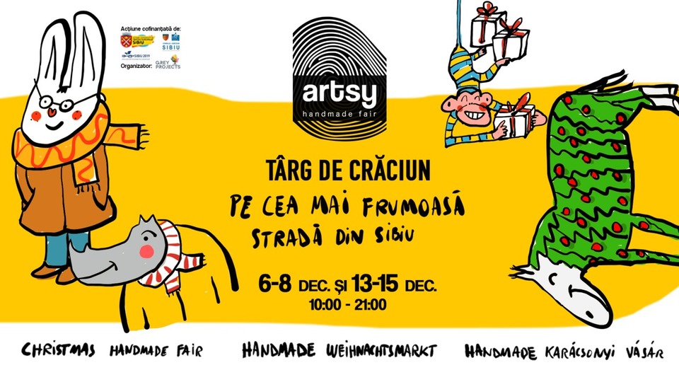 În perioada 13 – 15 decembrie, Strada Cetății ce transformă pentru al doilea weekend pentru a găzdui Festivalul Artsy din Sibiu. Organizatorii au pregătit căsuțe cu produse handmade, Ateleru’i Ler și concerte live. Sâmbătă, 14 decembrie, pe sena festivalului va urca trupa Umbra de la ora 16:30, iar de la ora 18:00 King Are Overrated vor prelua atmosfera. Duminică, 15 decembrie, de la ora 18:00, sibianca Elven Bird va încânta participanții cu vocea ei, iar de la ora 19:30, om la lună va încheia festivalul. Mai multe detalii puteți găsi pe pagina de Facebook dedicată.