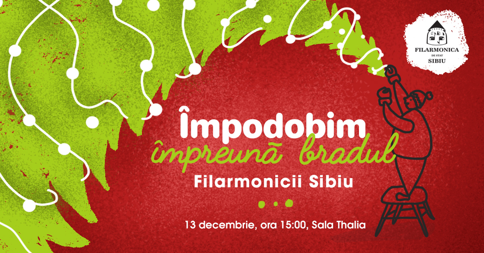 Filarmonica de Stat Sibiu invită melomanii în fața Sălii Thalia pentru a împodobi bradul. Începând cu ora 15:00, sibienii vor împodobi bradul orchestrei cu ornamente realizate din materiale reciclabile. Pentru realizarea acestui proiect, studenții Facultăți de Arhitectură „Ion Mincu”, au dedicat un atelier din care au rezultat decorațiunile inedite. Toți cei care îți doresc să își pună creativitatea la încercare sunt invitați să își aducă propriile decorațiuni pe care bradul le va „purta” cu mândrie.