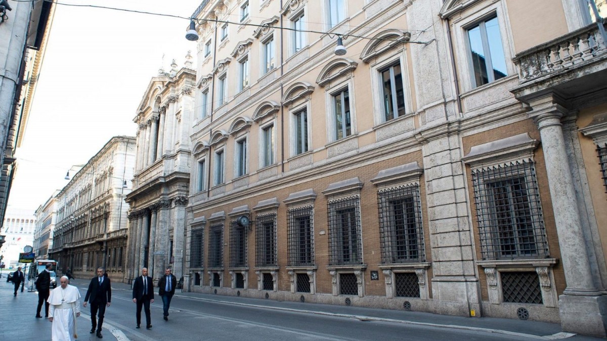 O imagine publicată de Vatican îl înfăţişează pe Papa, însoţit de câţiva membri din cadrul personalului de securitate, deplasându-se pe jos pe Via del Corso, stradă principală de obicei foarte circulată, însă pustie duminică.