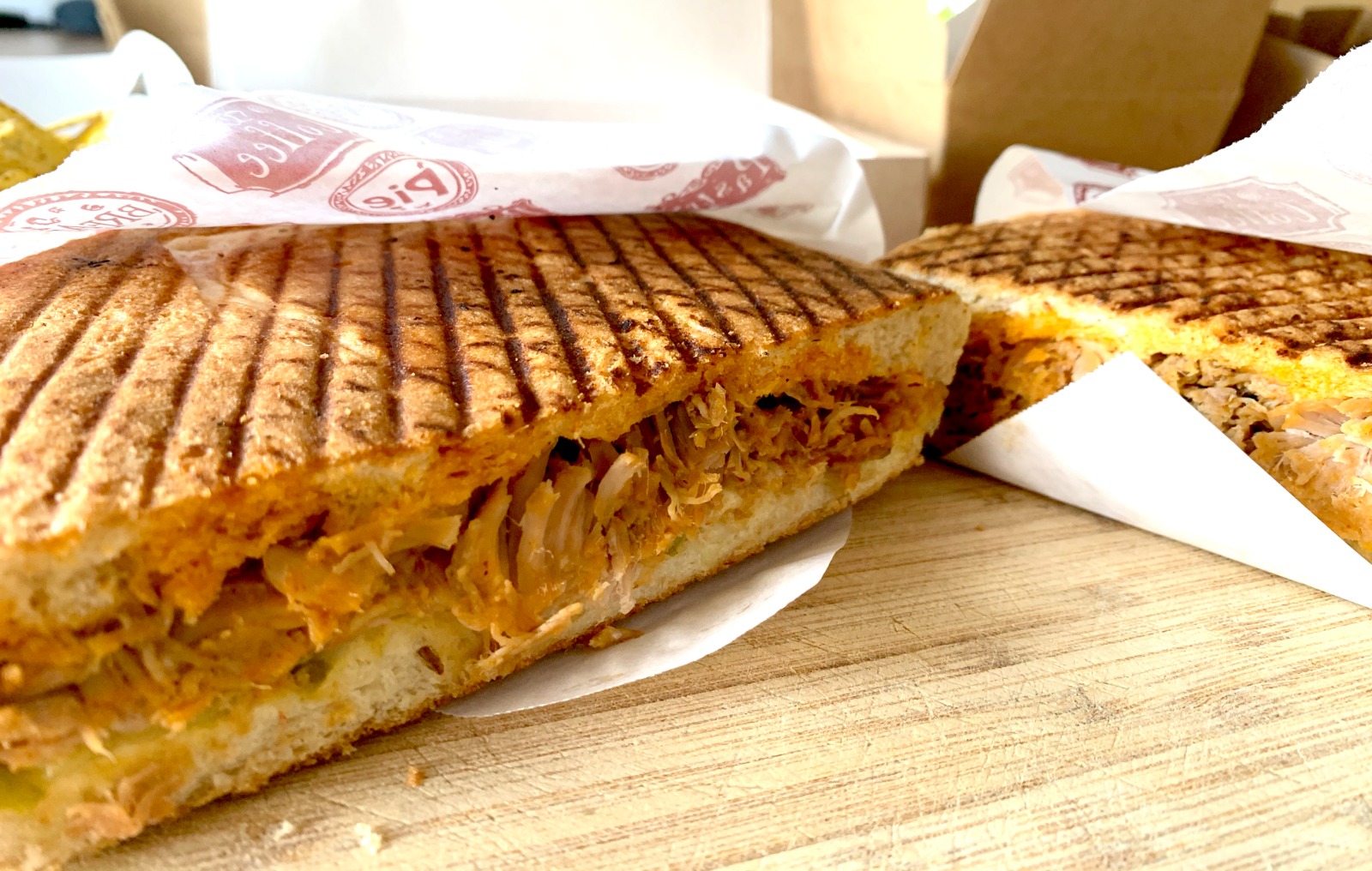 Pentru o imagine de ansamblu am comandat două dintre cele șase meniuri vedetă așezate în frunte, deși era evident că ar fi inuman de mult pentru o singură persoană. Am ales un meniu Big Mex, cu taco, nachos și-o clătită cu Nutella plus un suc la 0,25 și un meniu Mexican cubano, un sandwich cubano, cartofi prăjiți cu chilli dulce și parmezan, jalapeno și chipotle mayo plus un suc. Bulină roșie pentru ambalaj, totul era foarte bine rânduit, produsele nu se amestecau între ele. Aspect, suficient de interesant încât să îți trezească interesul. Cantitate, imensă. Sandwich-ul cubano cred că e cel mai mare sandwich pe care l-am văzut în viața mea. Era tăiat în două și împărțit în cutii diferite, cele mai voluminoase din întreg transportul. Am mâncat jumătate dintr-un sfert, până miercuri îl dovedesc pe nemernic. Gustul sandwich-ului a fost excelent. Pulled pork, o felie generoasă de șuncă, o maioneză foarte gustoasă, castraveți murați gustoși. Doar că n-are nicio treabă cu mâncarea mexicană iar jalapeno eu nu am găsit în sandwich. Poate în porția de mâine. Nici taco-ul n-ar fi făcut mândru vreun mexican de provincie. Cert e că în el se simțea ușor gustul de coriandru, specific bucătăriei mexicane, iar dacă turnai lime peste puteai să te păcălești parțial că mânânci ceva cu iz mexican. Umplutura de bază era același pulled pork din sandwich-ul cubano, asortat pe o lipie de taco cu o salsa de roșii. Din nou, bun, foarte gustos, dar nu prea mexican. Mi-au plăcut nachos-urile și combinația cu sosul de brânză, cartofii cu chilli dulce n-au fost însă străluciți.