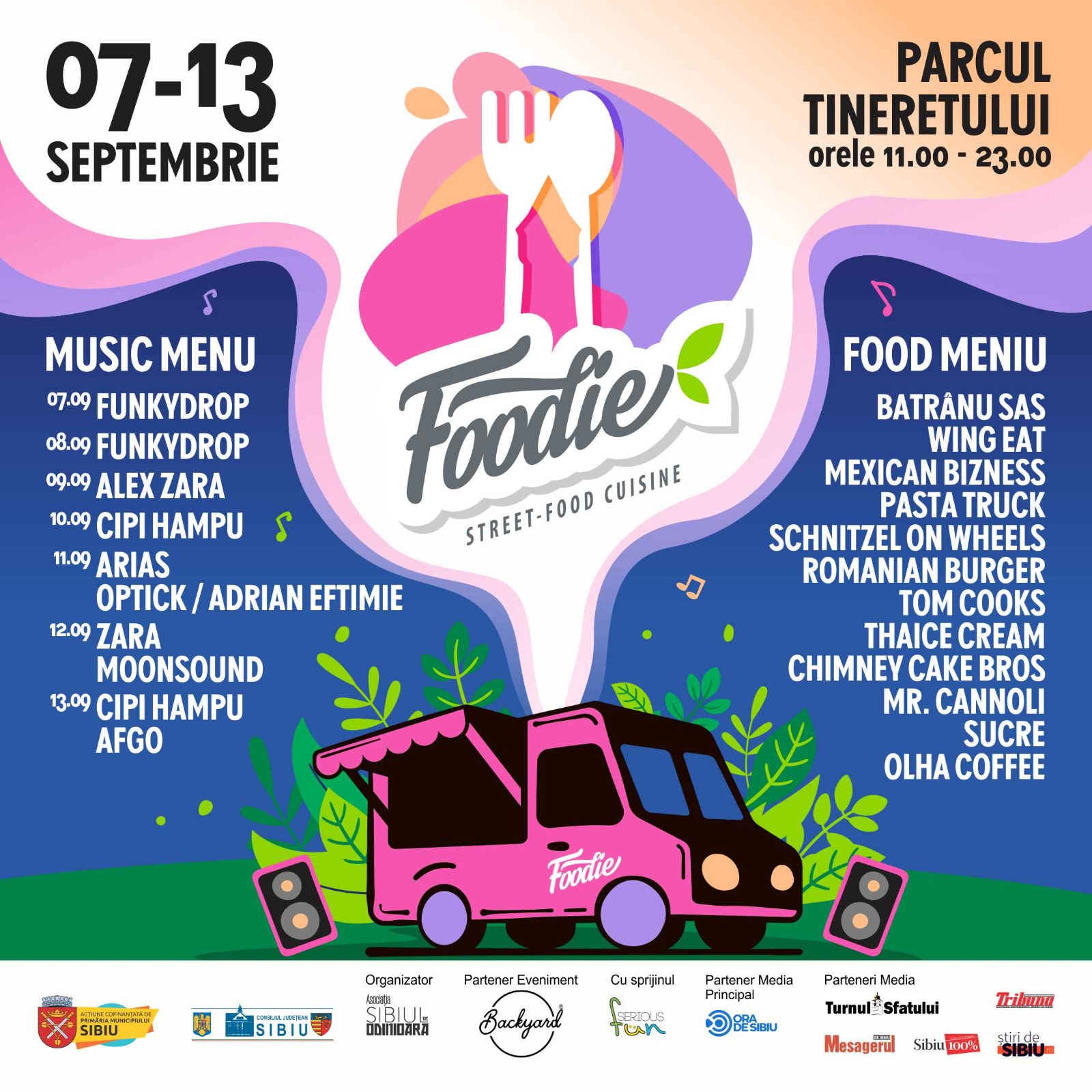 Imediat după ’’Sibiul de Odinioară’’, în aceeiași locație din Parcul Tineretului, răsfățul culinar continuă cu ’’Foodie - Street Food Cuisine’’. Preț de șapte zile, între 7 și 13 septembrie, gurmanzii sunt așteptați să continue să deguste preparatele pregătite la cele doisprezece food truck-uri.