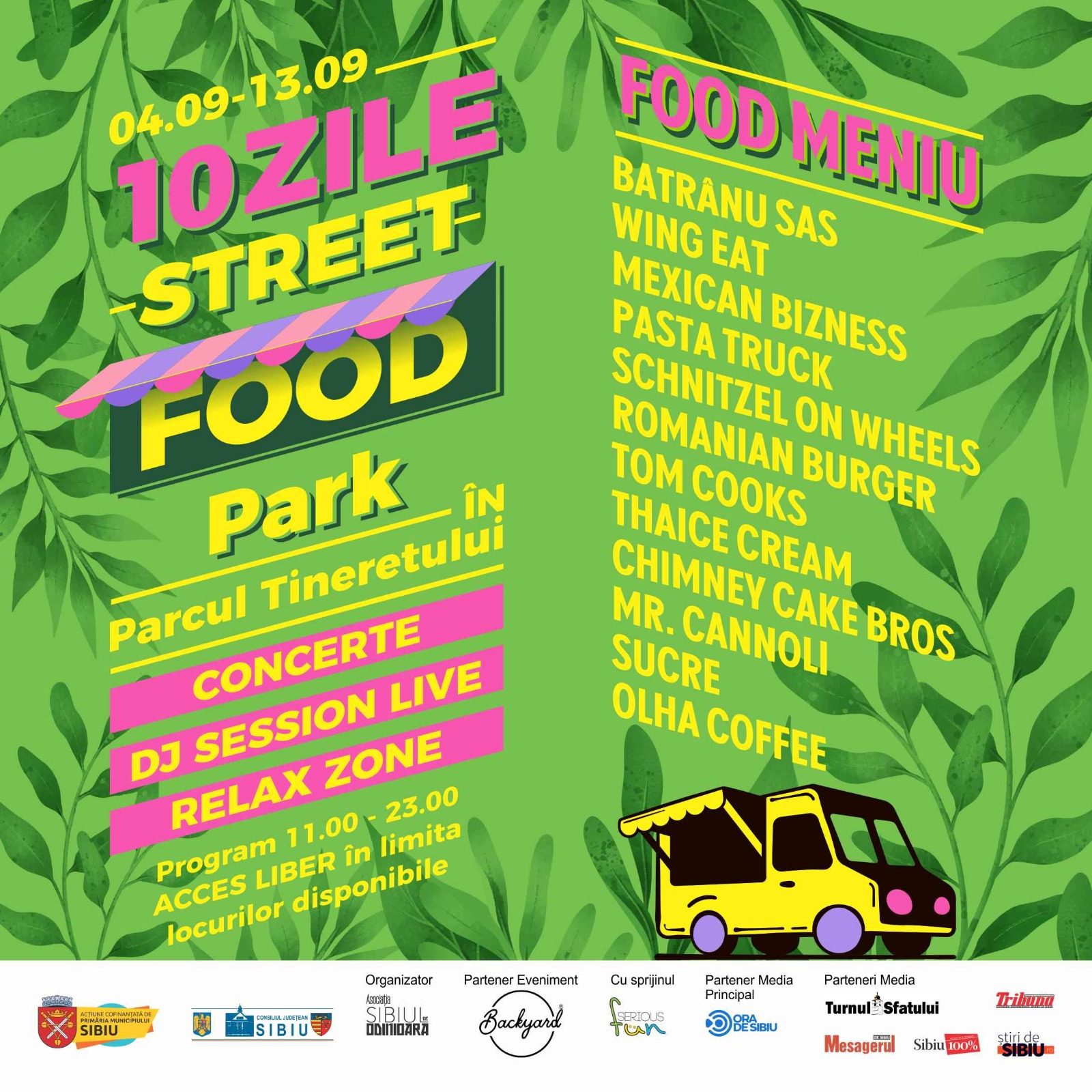 Sibienii sunt invitați la un adevărat festin culinar, timp de zece zile la ”Street Food Park” în Parcul Tineretului, amenajat în cadrul evenimentelor ”Sibiul de Odinioară” și ”Foodie – Street Food Cuisine”. Doisprezece food-truck-uri vă așteaptă să degustați produsele lor. Concerte cu Onenightstand, Semnal M și Talisman, Emeric Imre, Ducu Bertzi, Mircea Vintilă, DJ Session Live cu FunkyDrop, Alex Zara, Cipi Hampu, ARIAS, Dj Optick, Adrian Eftimir, Moonsound și Afgo.