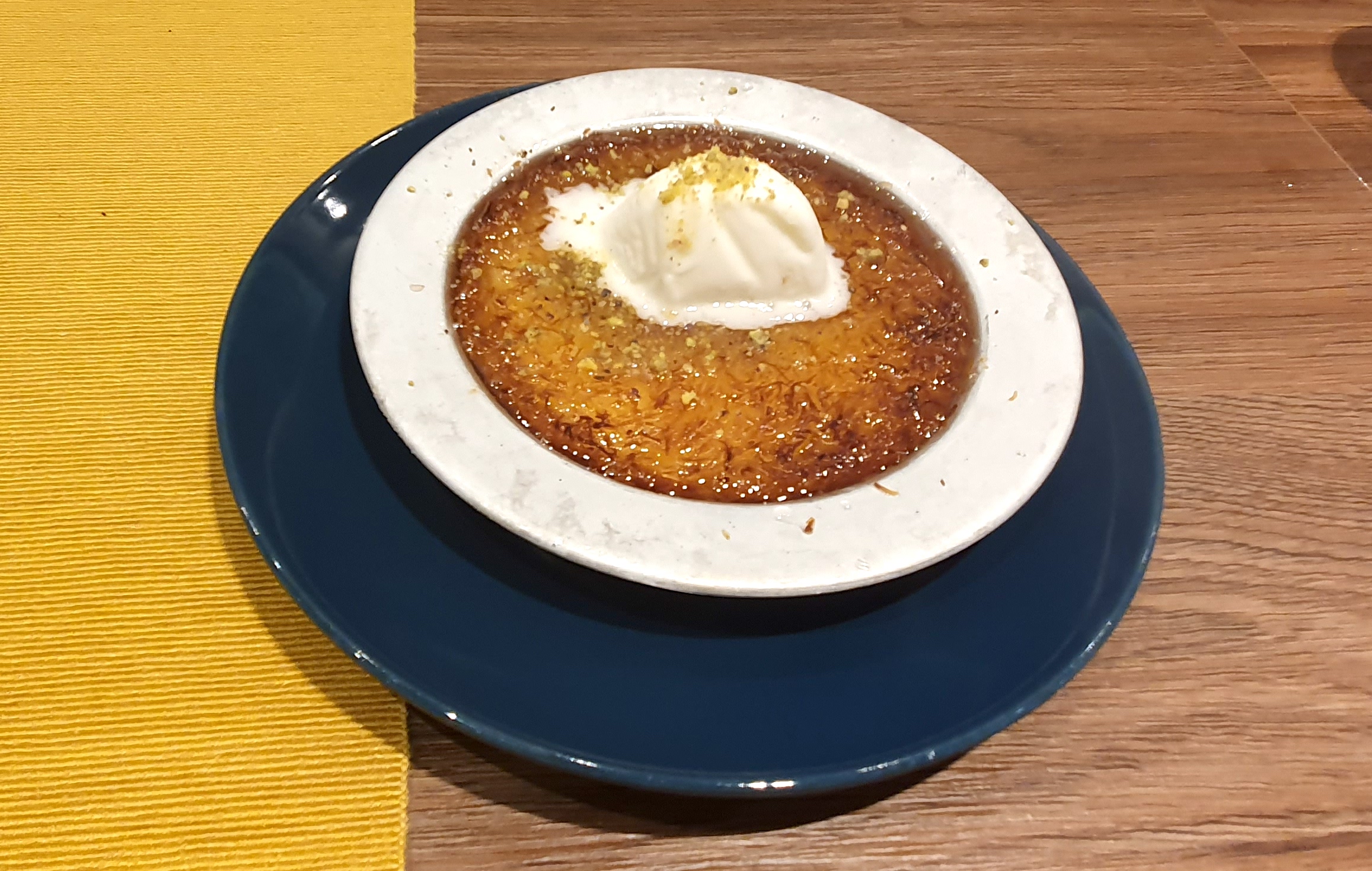 Cu excepția cărnii, practic ambele platouri care ne-au fost aduse erau identice. Aceeași aranjare, aceleași legume: roșii (din păcate, nu cu foarte mult gust), varză albă, varză roșie, castraveți cruzi, inele de ceapă, cartofi prăjiți, ardei iute bun și trecut peste gratar, ardei copți și lipie așternută peste carne. Nu numai din descriere, dar și din experiență, porțiile sunt mari și își îndeplinesc cu brio misiunea, aceea de a te sătura cu o mâncare bine pregătită. Desertul – un künefe ca la turci acasă – l-am împărțit pe din două, căci pentru noi nu mai era loc de mai mult.