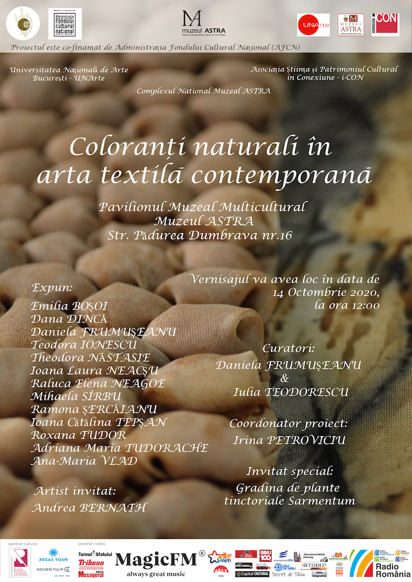 „Coloranți naturali în arta textilă contemporană” este un proiect expozițional ce are ca scop crearea unei conexiuni între arta textilă contemporană și patrimoniul textil românesc, european și universal, prin intermediul coloranților naturali. Coordonat de Asociația Știința și Patrimoniul Cultural în Conexiune (Asociația i-CON), proiectul este realizat în parteneriat cu Universitatea Națională de Arte București (UNArte) și, desigur, Muzeul ASTRA. Proiectul este co-finanţat de Administrația Fondului Cultural Național (AFCN).
