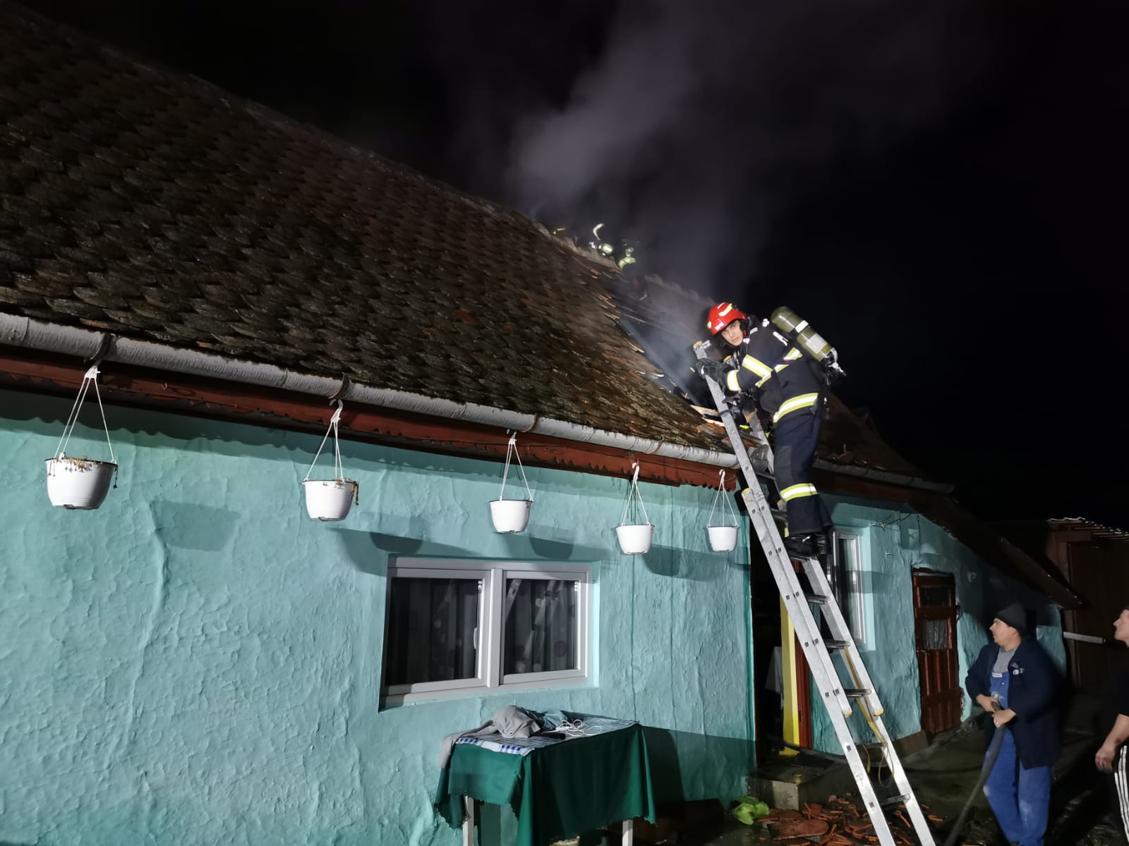 A ars acoperișul casei pe o suprafață de aproximativ 10 mp, iar cauza probabilă de izbucnire a incendiului a fost determinată de un coș de fum deteriorat.