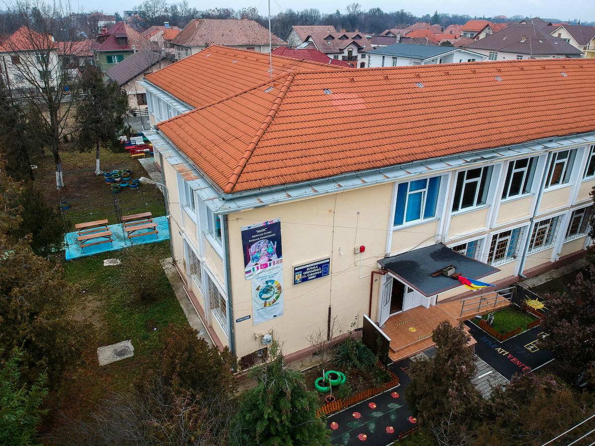 - o sală de gimnastică cu vestiare și dușuri pentru elevi,