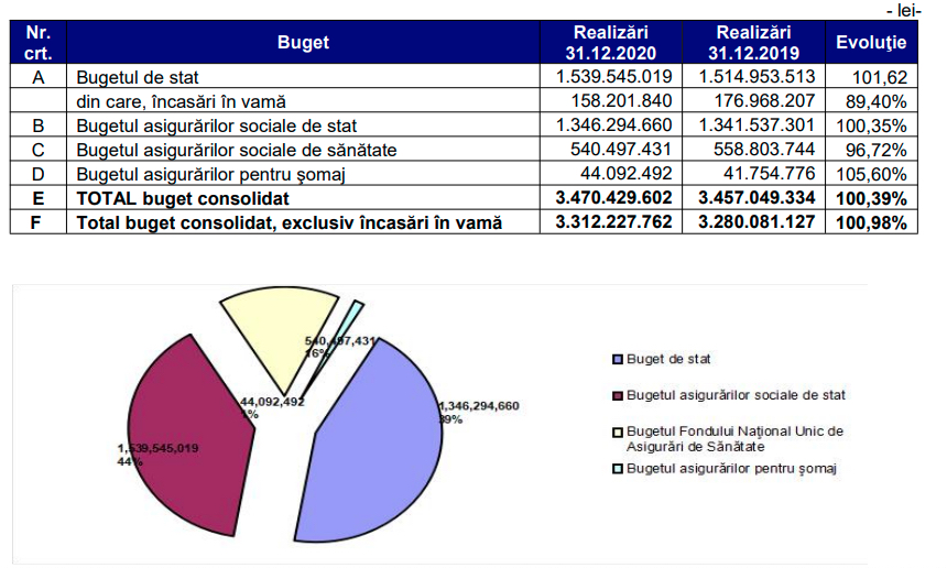 ”Remarcăm o creștere cu 0,98 % a veniturilor bugetare colectate comparativ cu anul precedent în condiţiile în care obligaţiile fiscale declarate de contribuabili au înregistrat o creştere cu 6,61%. În anul 2020 sumele declarate de contribuabili au fost de 3.724,84 milioane de lei în timp ce în anul 2019 sumele declarate au fost de 3.493,82 milioanel de lei”, se mai arată în raportul semnat de Radu Dobre, șeful Administrației Județene a Finanțelor Publice Sibiu.