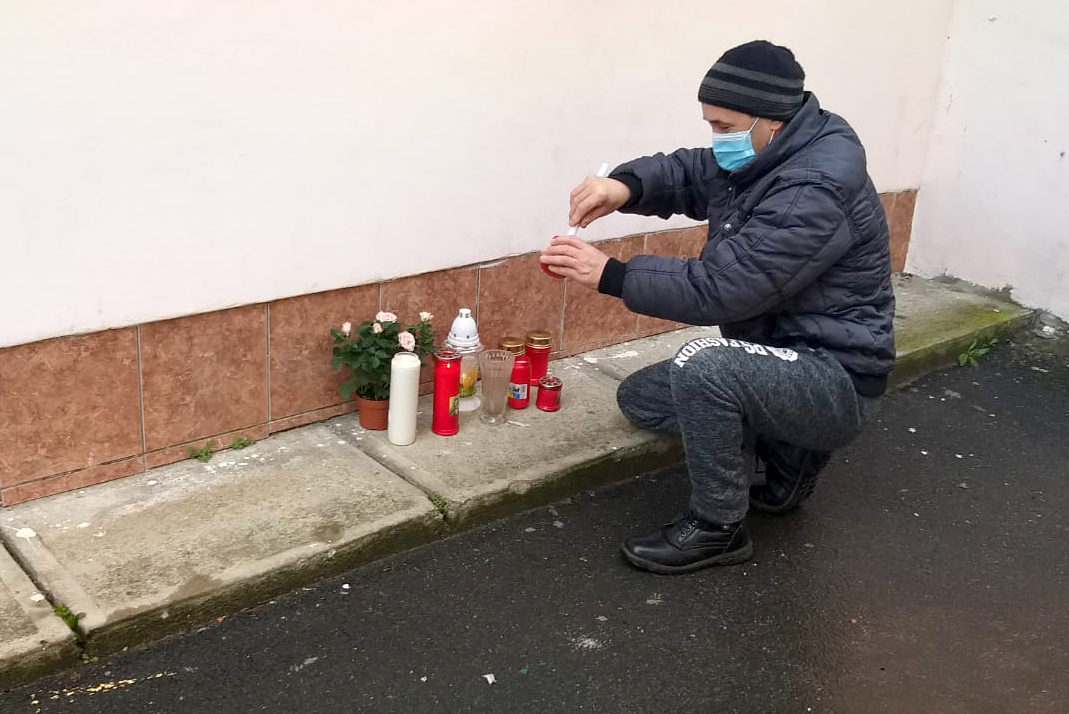 Sub geamul cabinetului în care a profesat medicul Ivonne Ioana Voinescu este deja un mic altar. Ioan Feșteu, un fost pacient aprinde o lumânare.