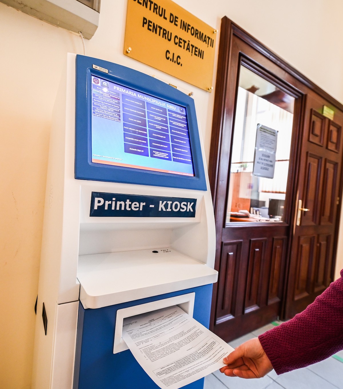 „Căutăm soluții pentru a simplifica accesul sibienilor la serviciile oferite de Primărie. Pe de o parte continuăm să implementăm soluții de comunicare electronică, dar ne gândim și la cei care nu au acces la instrumente digitale. În următoarea lună testăm un chioșc self-service cu ajutorul căruia cetățenii își pot tipări singuri formulare tipizate, fără să mai fie nevoie să ajungă la un ghișeu. Dacă acest chioșc își dovedește utilitatea, vom analiza varianta achiziționării unui astfel de aparat. Trebuie precizat că formularele necesare în relația cu Primăria Sibiu și serviciile publice sunt disponibile pentru tipărire și pe sibiu.ro, la secțiunea Informații publice / Formulare necesare, marea majoritatea putând fi transmise în format electronic Primăriei, fără a mai fi necesară deplasarea la ghișeu”, a declarat Astrid Fodor, primarul municipiului Sibiu.