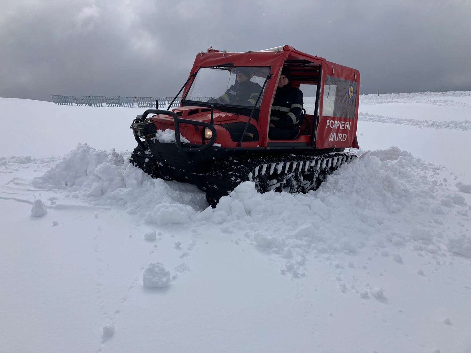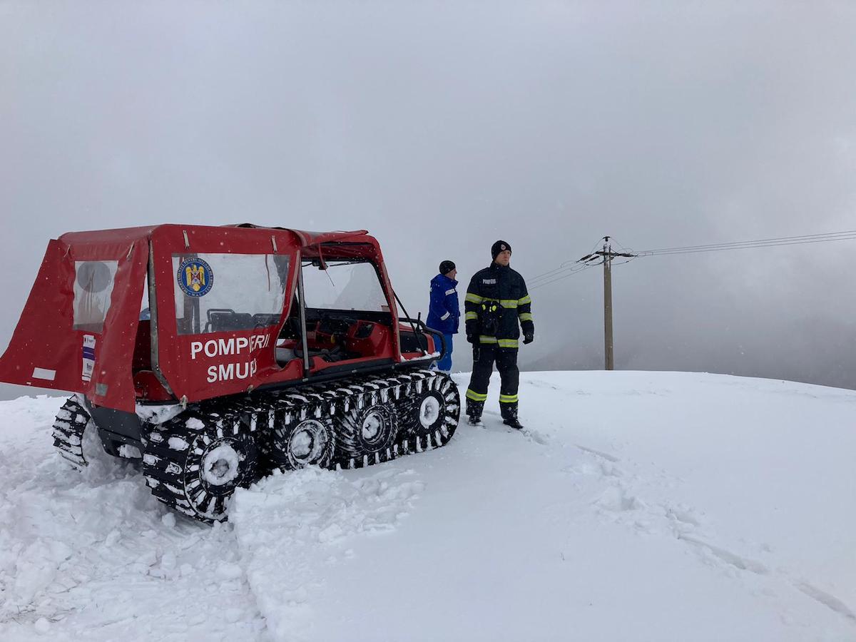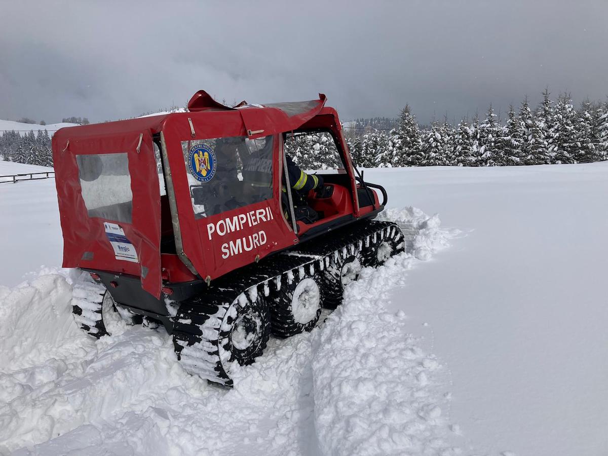 De asemenea, salvatorii facilitează cu șenilata deplasarea echipelor furnizorului de electricitate pentru remedierea defecțiunilor tehnice apărute.