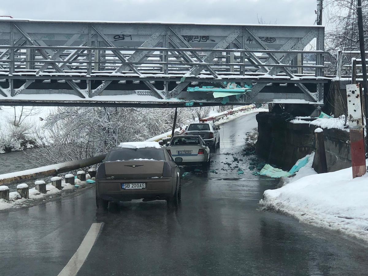 Șoferul unui microbuz încărcat cu ouă s-a blocat în această dimineață sub podul de pe strada Viitorului.