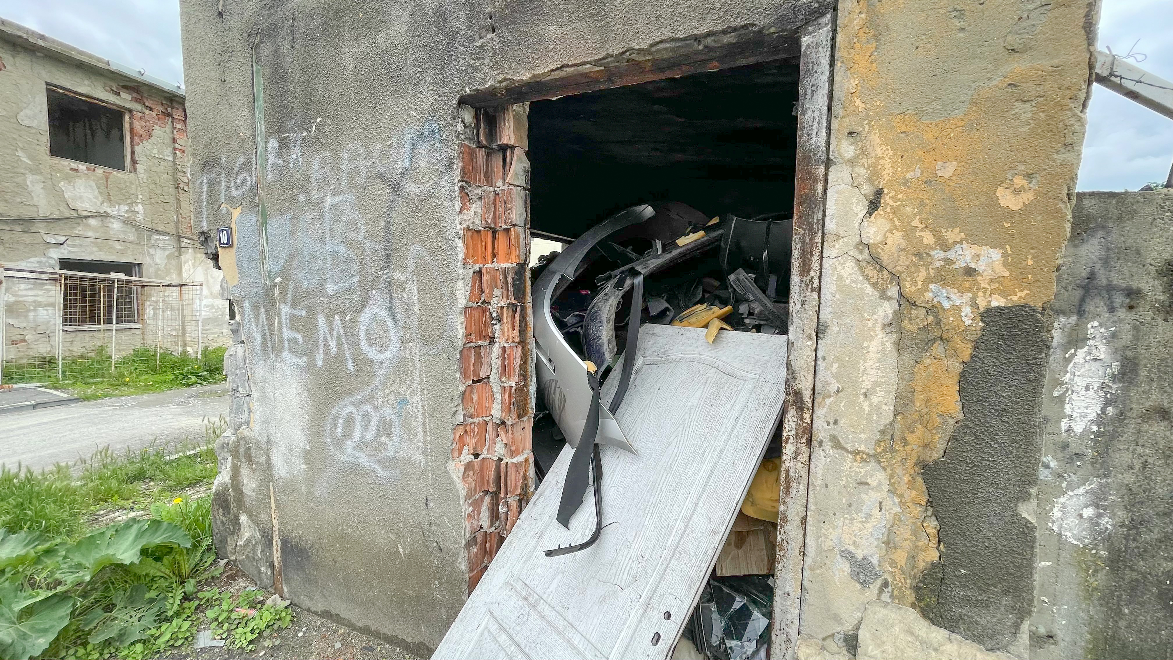 Vegetația abundentă susținută de ploile din ultimele zile acoperă, treptat, covoare din cioburi și bucăți din ceramică izolatoare. Arcurile din metal ale unor saltele și capetele unor stâlpi de curent electric sunt prea mari pentru fi ascunse.