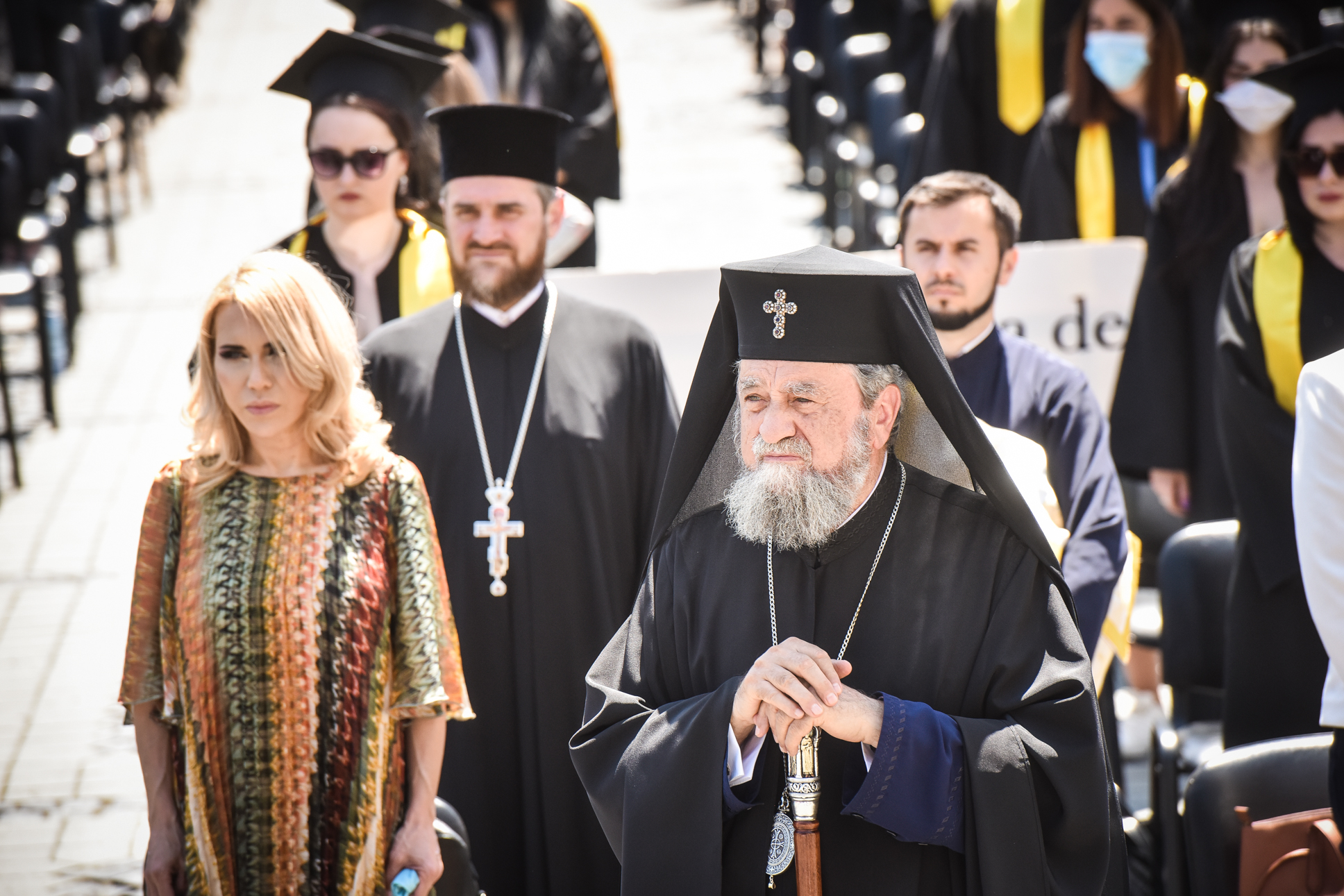 „Întâi de toate îi binecuvântăm și le mulțumim cadrelor didactice, celor care au stat nu departe de studenții lor, aproape sufletește, dar într-un mod cu totul deosebit, chiar straniu, să vorbești mereu în fața calculatorului, să urmărești dacă sunt atenți sau nu, dar și studenții au trecut un examen deosebit. Veți fi generația despre care se va vorbi de multe ori și voi o să vă amintiți cum ați trecut aceste examene și cum într-o zi de Înălțare a Domnului, de cinstire a eroilor, ați fost considerați eroi cu toții. Să ne ajute Dumnezeu pentru a birui, vă transmitem curaj, bărbăție, sunteți tineri, ajutați-vă profesorii să înțeleagă că sunteți alături și că vă implicați pentru că vreți să fiți generația viitoare pe care întreaga națiune să se bazeze”, a spus Mitropolitul Ardealului.