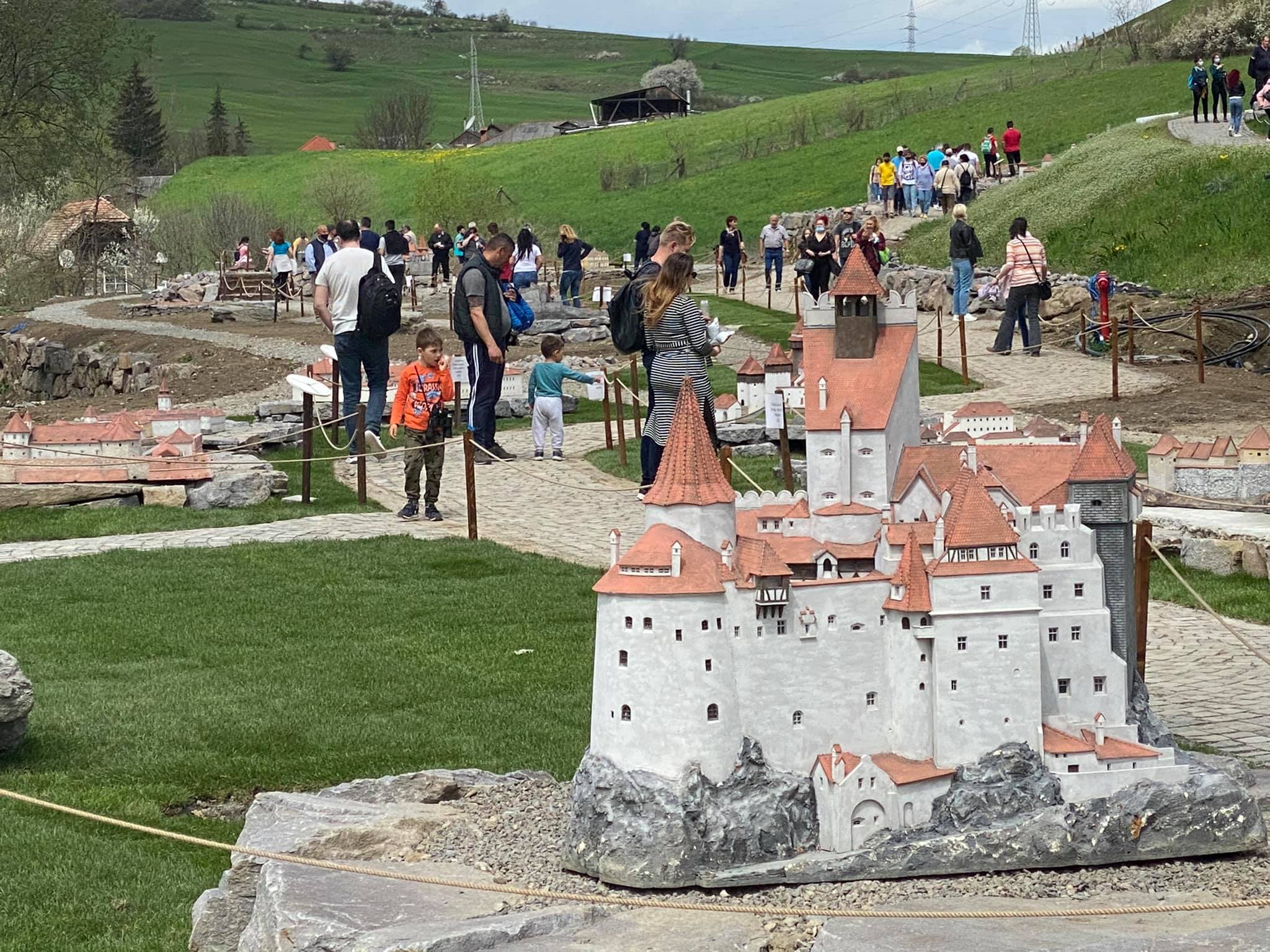 "E foarte frumos, minunat, venim din Bucureşti. (...) Noi avem o vârstă, am trecut de 60 de ani, am văzut Europa, dar nu ne-am văzut ţara. Acum, avem 21 de nopţi de cazare şi ca obiectiv am decis să ne vedem ţara, care e frumoasă, e superbă. (...) Am fost la Tuşnad, mergem la Sovata şi am oprit în drum şi am fost încântată de ceea ce am văzut aici.Avem o ţară superbă, dar noi ne-am obişnuit să plecăm în afară, de aceea recomand copiilor noştri să-şi cunoască ţara.. Eu iau şi partea bună a pandemiei, aceea că nu am mai avut curajul să urcăm în avion şi am decis să ne vedem ţara", spune Florentina Dumitrache, o turistă care analizează, încântată, machetele clădirilor din parc.