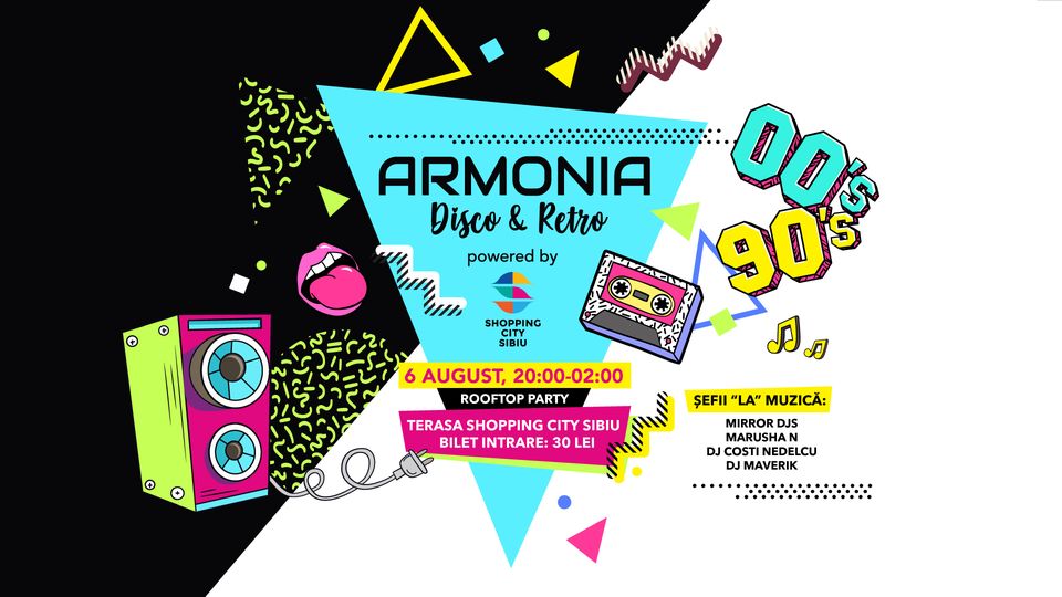 În această seară, de la ora 20, sunteți invitați pe Terasa Shopping City Sibiu să vă amintiți de muzica anilor 90 la Armonia Disci & Retro. Detalii despre eveniment găsiți aici.