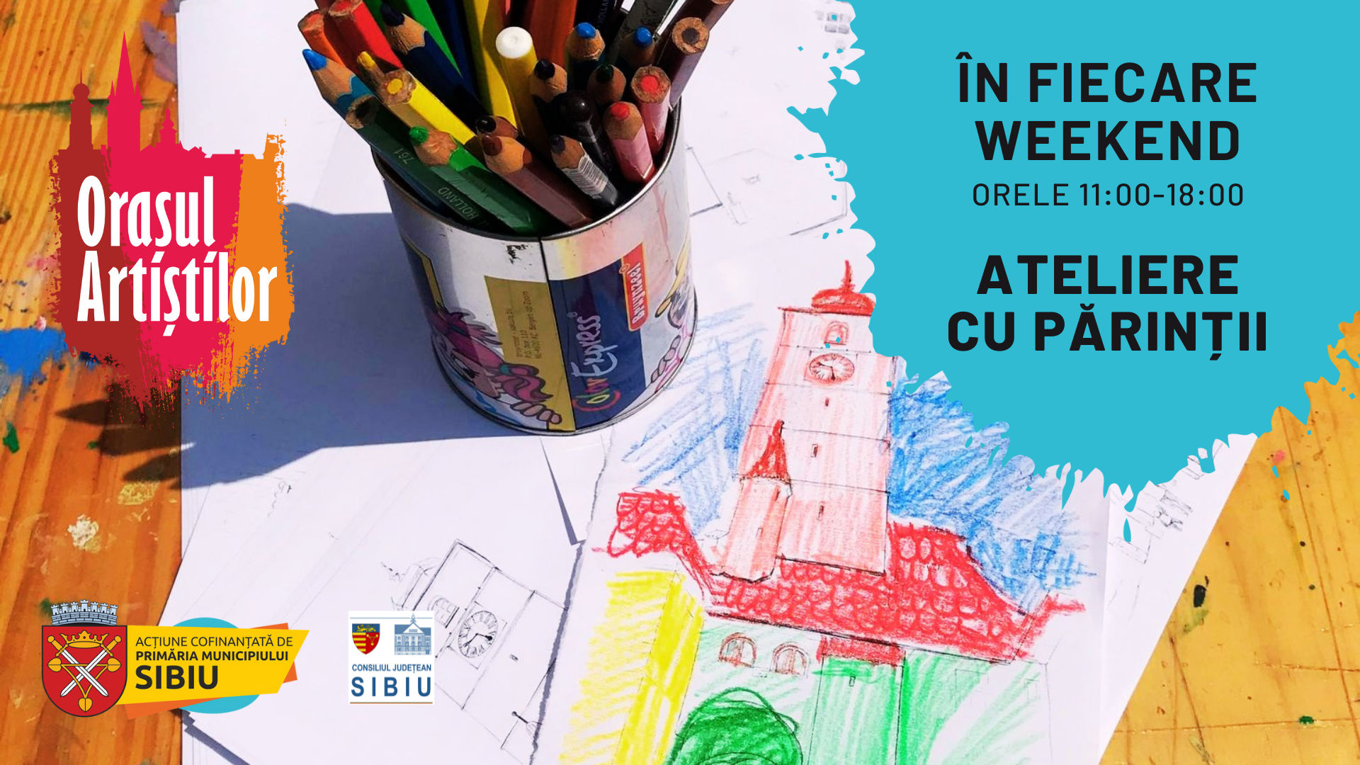 În orașul artiștilor, micuții sunt invitați alături de părinți să participe la mai multe ateliere interactive. Atelierele cu părinții se desfășoară în fiecare weekend, între orele 11:00-18:00, în Orașul Artiștilor, pe platoul din fața Turnului Sfatului din Sibiu.