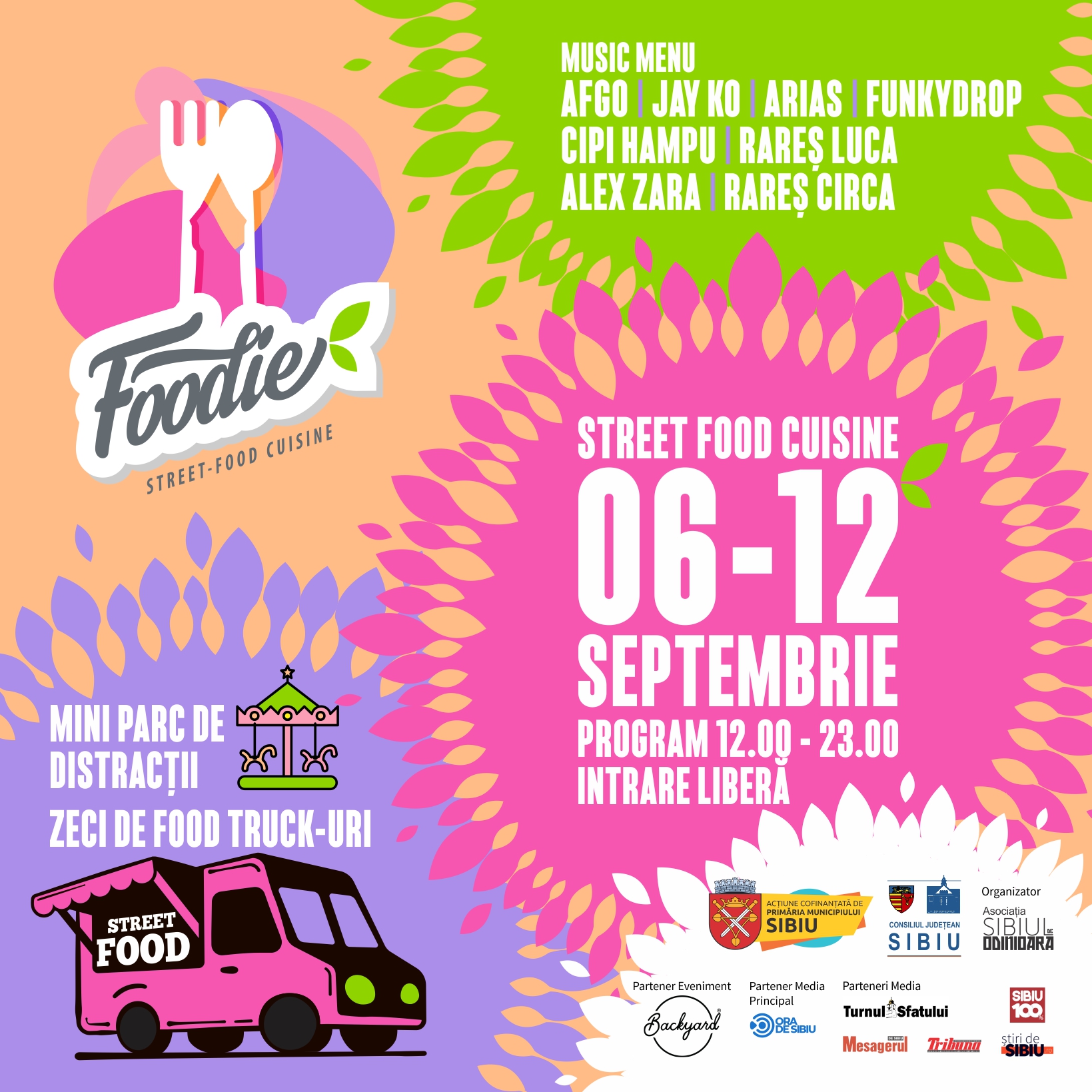 Imediat după ’’Sibiul de Odinioară’’, în aceeiași locație din Parcul Tineretului, răsfățul culinar continuă cu ’’Foodie - Street Food Cuisine’’. Preț de șapte zile, între 6 și 12 septembrie, gurmanzii sunt așteptați să continue să deguste preparatele pregătite la cele doisprezece food truck-uri.