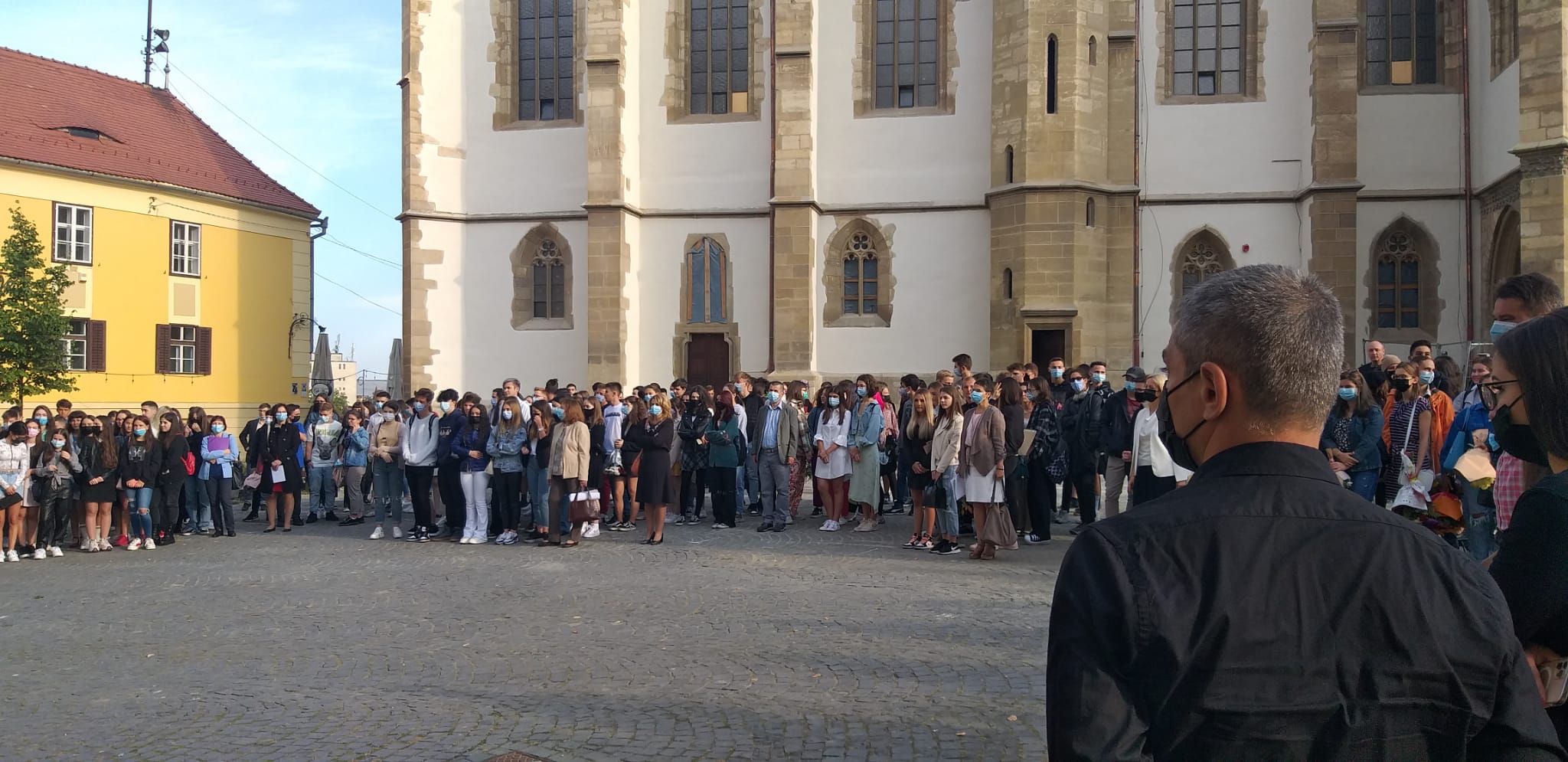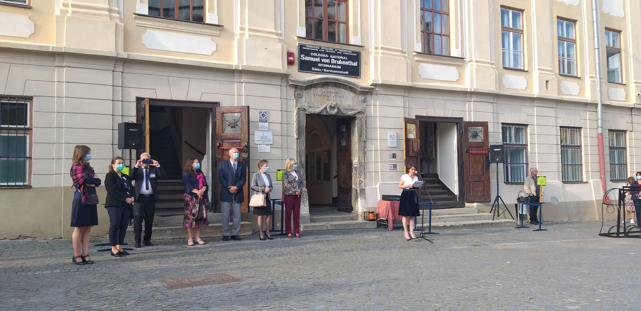 „Școala începe astăzi pentru un număr 459 de liceeni, în total 918 elevi în 32 de clase. Este un număr record în istoria școlii. Fiecare elev vine aici cu experiențe de viață și de învățare individuale. Va fi nevoie de multă deschidere, răbdare și toleranță din partea noastră, a profesorilor și a părinților pentru a-i îndruma pe acești adolescenți pe drumul lor. Va fi însă necesară și multă perseverență, hărnicie, seriozitate din partea voastră, a elevilor, pentru a dovedi că meritați calitatea de elev al Colegiului Brukethal. Pe voi, elevii claselor a XII-a vă așteaptă mai multe examenele în acest an...”, sună discursul directoarei, ținut la microfon. În aer parcă rămân, fantomatice cuvintele ei, „să demonstrați că meritați calitatea de elev al Colegiului Brukenthal”.