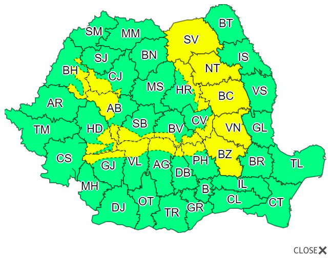 Astăzi, în intervalul orar 12-22, în sudul județului vor fi averse, descărcări electrice, intensificări de scurtă durată ale vântului și izolat grindină. Ploile vor avea și caracter torențial, iar cantitățile de apă vor depăși, în intervale scurte de timp sau prin acumulare, 20-25 l/mp și izolat 30-40 l/mp.