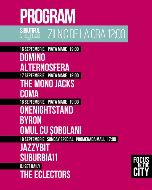 Tot în acest final de săptămână are loc și Focus in the city. Întreg programul îl găsiți pe pagina de facebook a evenimentului.