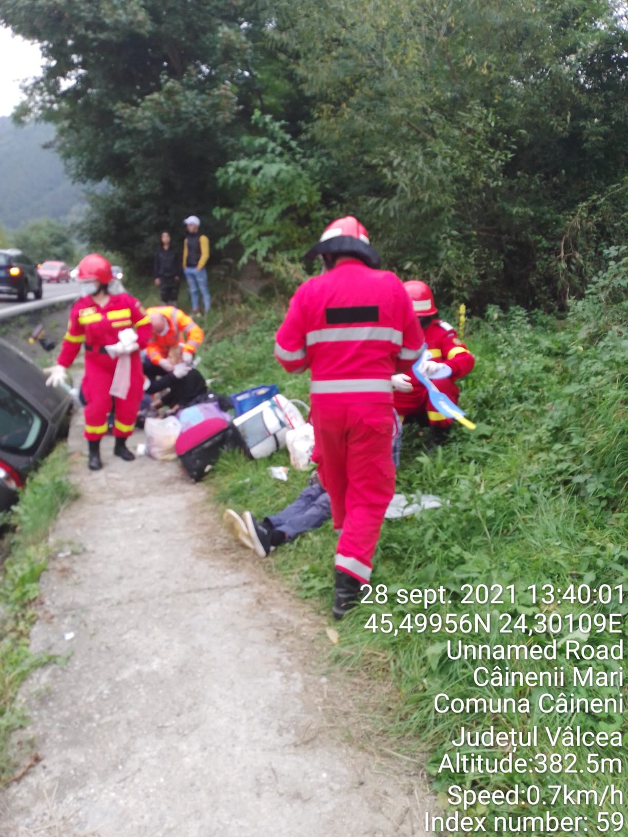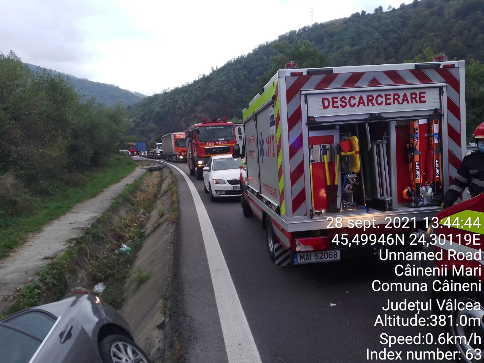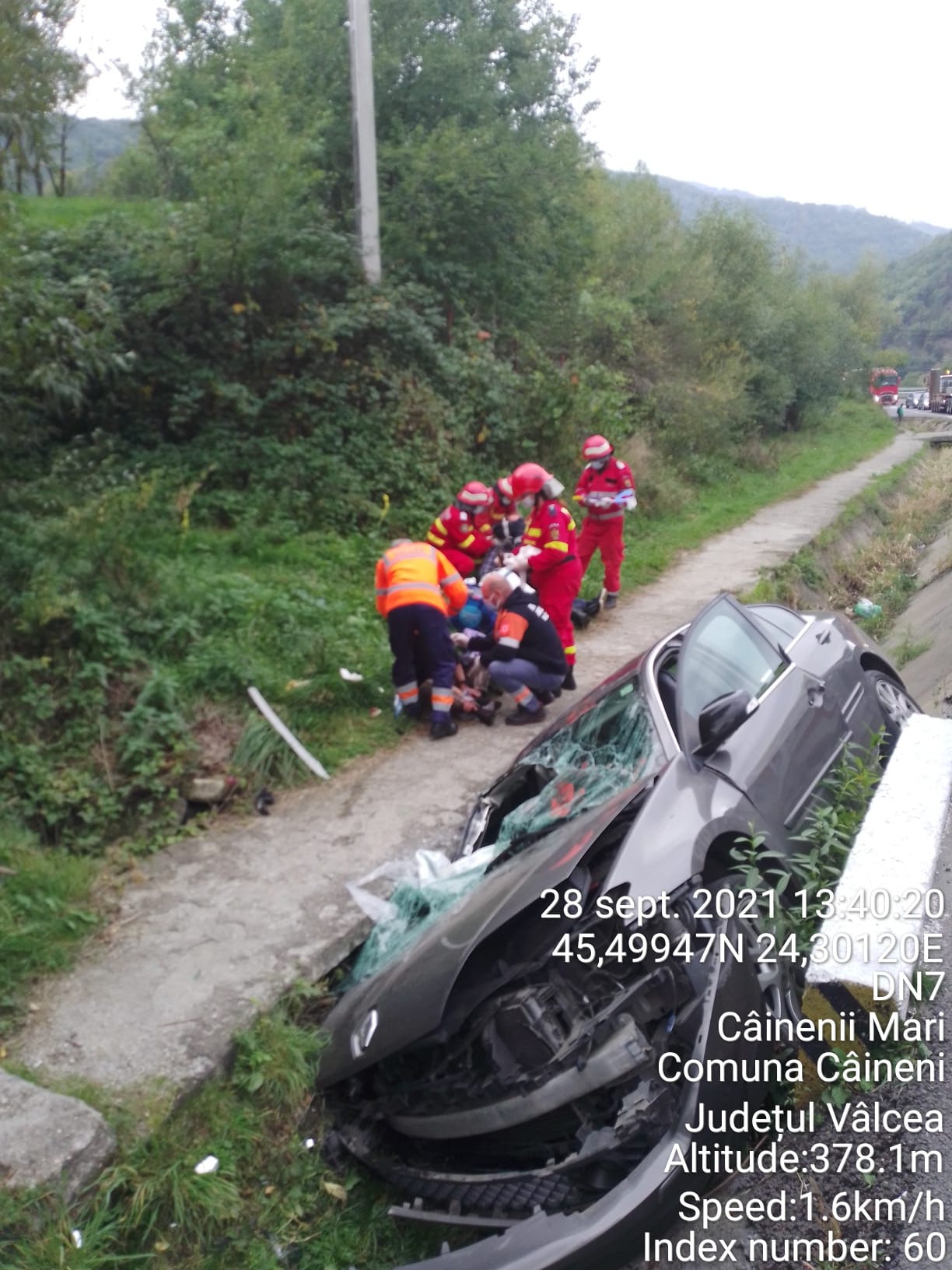 Reprezentanții ISU vâlcea anunță un accident rutier pe DN 7, în comuna Câineni, sat Câinenii Mici.