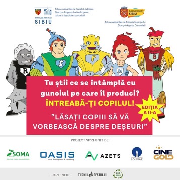 ”Lăsați copiii să vă vorbească despre deșeuri!”, ediția a II-a, este un eveniment cofinanțat de Primăria municipiului Sibiu și de către Consiliul Județean Sibiu.