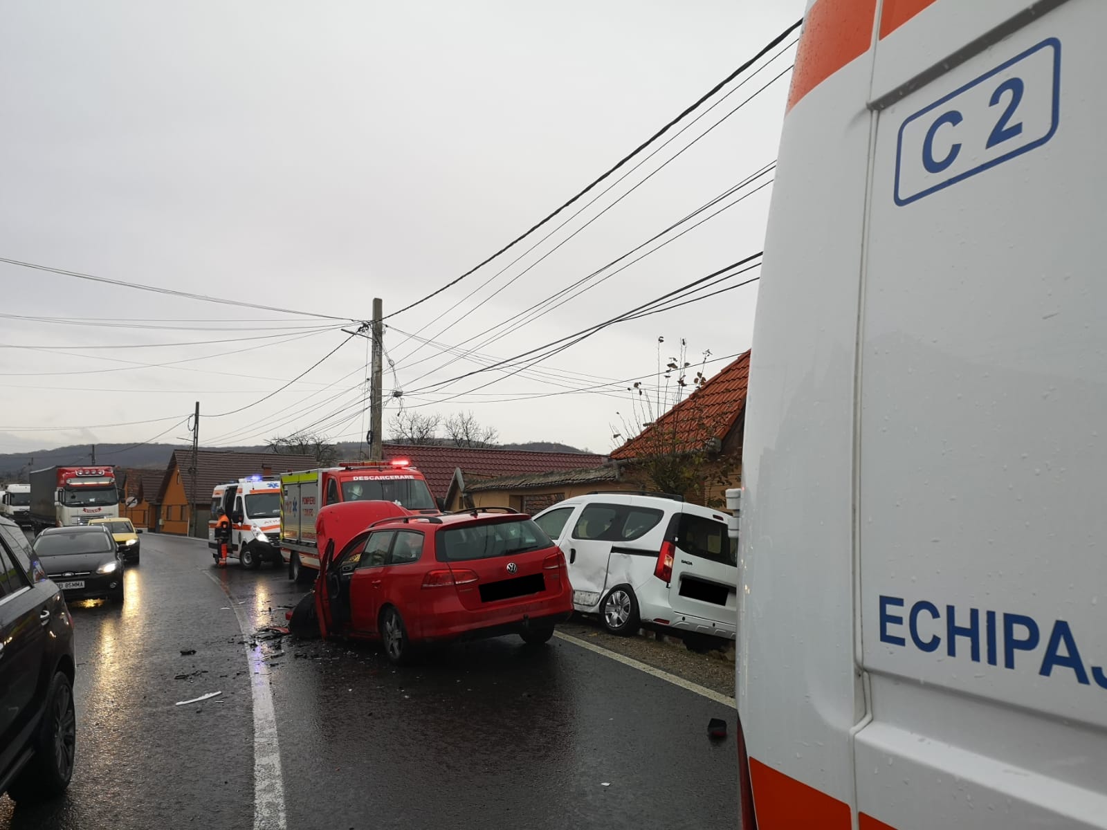 La fața locului au intervenit două echipaje ale Ambulanței, unul de tip C, cu medic, și unul de tip B. Victimele, trei bărbați în vârstă de 28, 33 și 35 de ani, au mai multe răni și vor fi transportate la Unitatea de Primiri Urgențe Sibiu, anunță Genu Scridon, din partea SAJ.