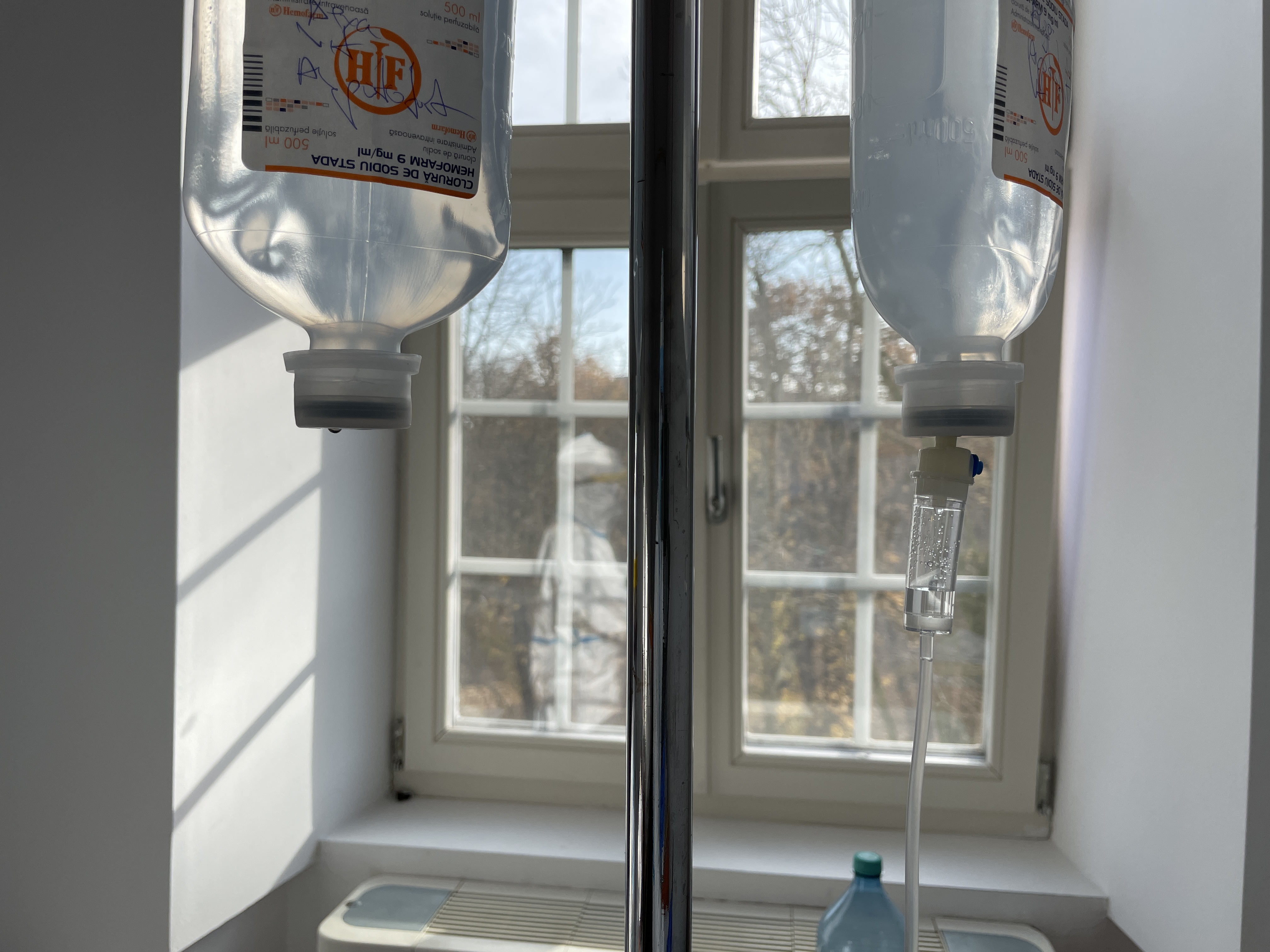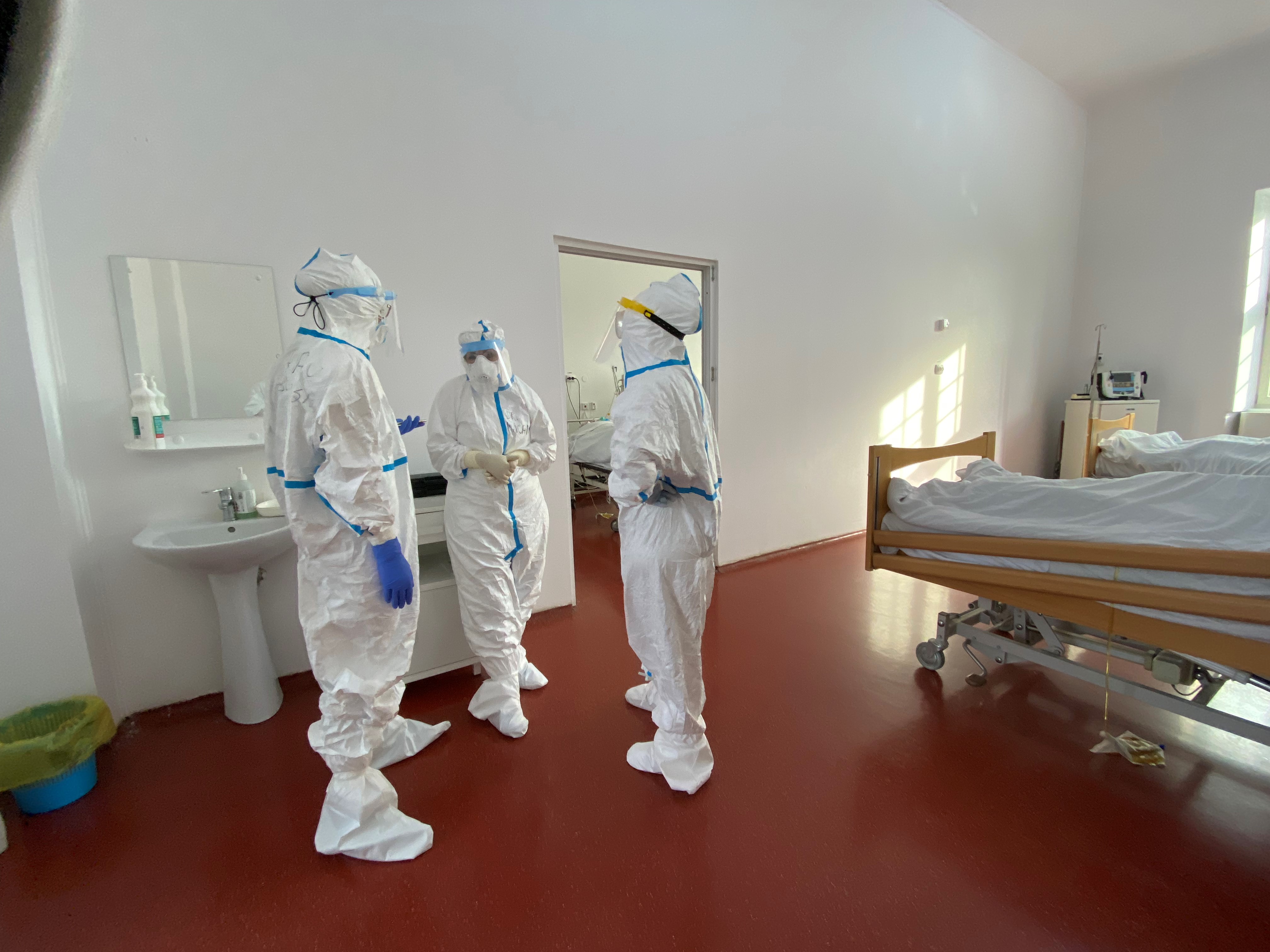 Doamna maior ne așteaptă la poartă. Completăm chestionarele de triaj pentru a putea intra în spital, iar apoi, pentru aproape o oră, primim instrucțiuni legate de întreaga perioadă pe care urmează să o petrecem în zona COVID a spitalului. Și pentru doamna maior este o premieră, dar o face cu determinarea de a ne fi alături și de a ne facilita discuțiile cu pacienții care doresc să își spună povestea. În aproximativ 20 de minute suntem echipați. Doar dacă îmbraci o singură dată echipamentul celor care lucrează pe secțiile roșii poți înțelege ce e în sufletul lor și cât de grea este această meserie în vremuri de „război”.
