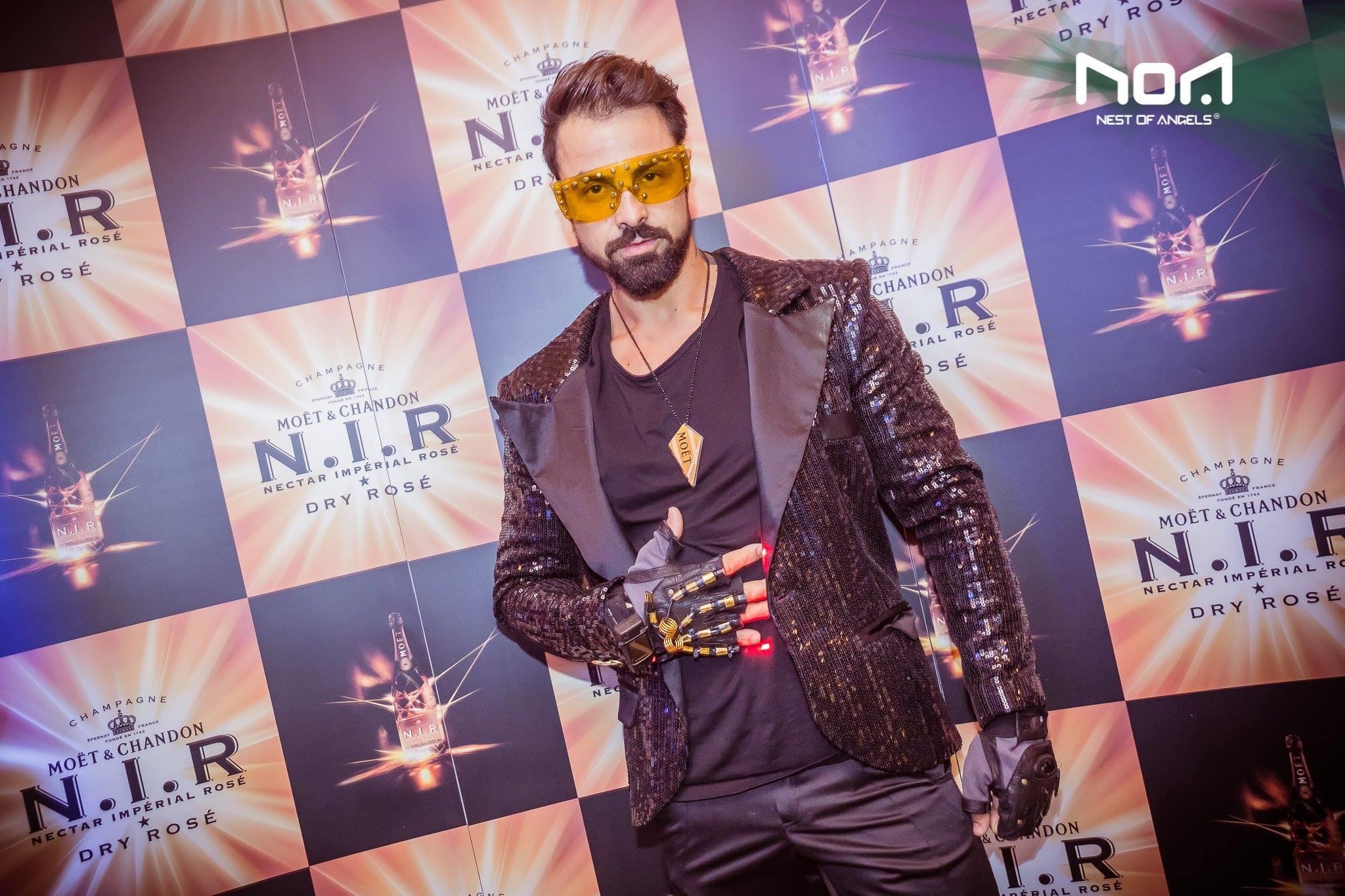 „Am făcut echipamente pirotehnice, roboți, tot felul de costumații, m-am dus și am făcut un curs la Petroșani de pirotehniști și am reușit să creez un concept al meu cu care am și avut un succes incredibil. Teoretic puteam merge cu el prin toată lumea, practic echipamentele erau foarte grele și era foarte scump să le transport. Am fost în Singapore, am fost în China în turneu. A fost incredibil, iar după lansarea acestui spectacol am început să fiu apreciat de echipele marilor DJ. Am început să colaborez cu David Guetta cunoscutul DJ francez sau cu Tiësto și mulți alții. Mergeam în turneele lor. I-am cunoscut pe Armani, Shakira, Ronaldo, Paris Hilton, pe DJ Sebastian Ingrosso din conceptul Swedish house mafia, pe Akon, pe DJ Luciano cu care am colaborat în petrecerea Cadenza Vagabundos. Creasem un personaj în interiorul căruia eu trăiam. I-am dat viață. Îmi spuneau machina (mașina) și intram în deschideri. Mă ridicam în aer, cu artificii, cu tot felul de efecte speciale care te lăsau fără glas. INVADERS este unul din multele mele proiecte de succes atât pe plan național cât și internațional. Toate costumele sunt create și realizate de mine. Am reușit cu acest concept sa performez la cele mai mari petreceri din Ibiza, festivaluri din întreaga lume, cluburi și petreceri private. Este una dintre pasiunile mele aceea de a crea concepte pe tema future.”