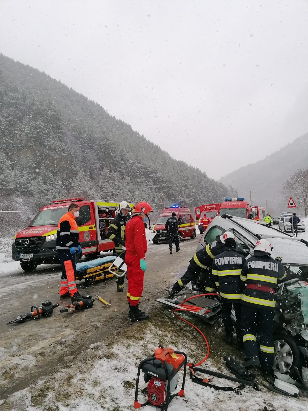 La fața locului au intervenit un echipaj al Ambulanței, un echipaj de descarcerare, trei echipaje SMURD și un echipaj de pompieri militari.