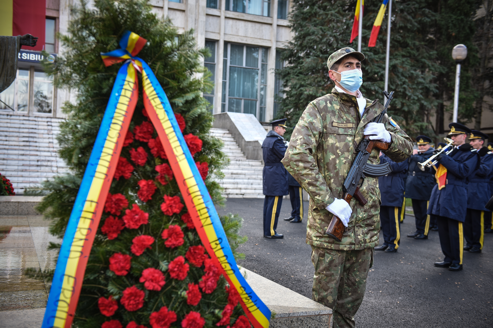 Autoritățile locale din Sibiu au anunțat câteva evenimente speciale pe care le-au pregătit pentru a marca Ziua Națională a României. Primul eveniment a fost depunerea de coroane și jerbe de flori și a avut loc la ora 11, la Monumentul „Ostașului din toate timpurile”, în fața Cercului Militar din municipiul Sibiu.