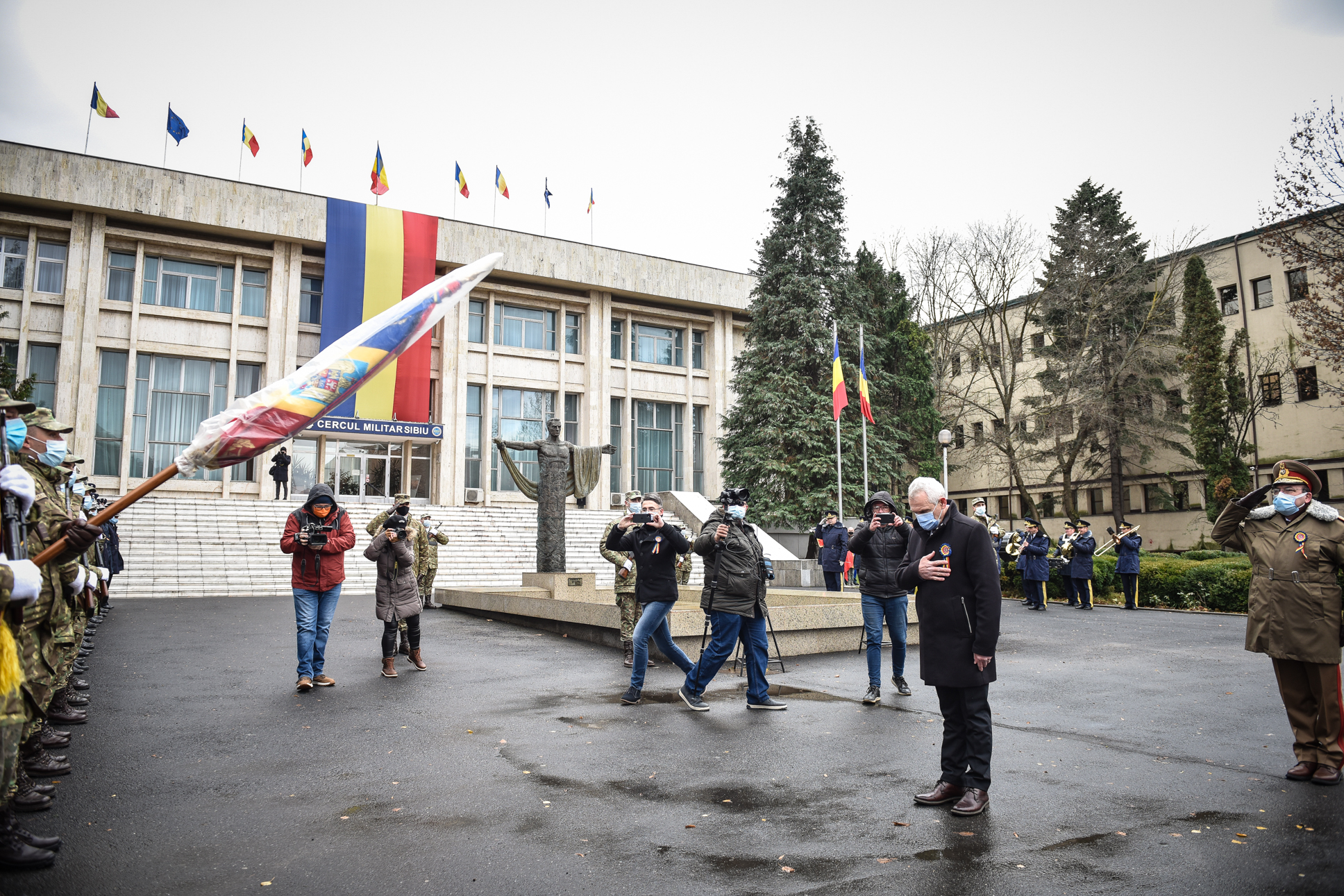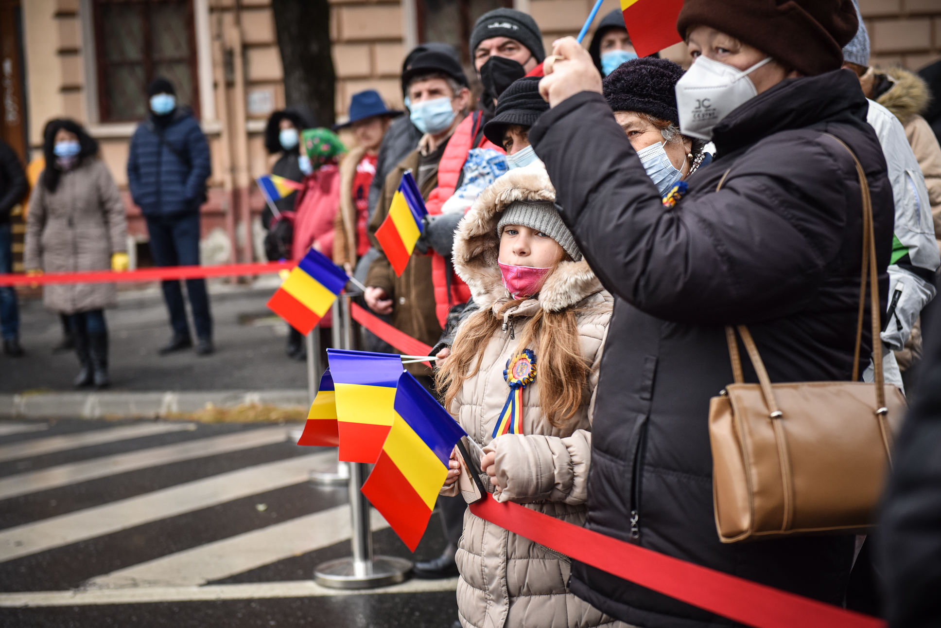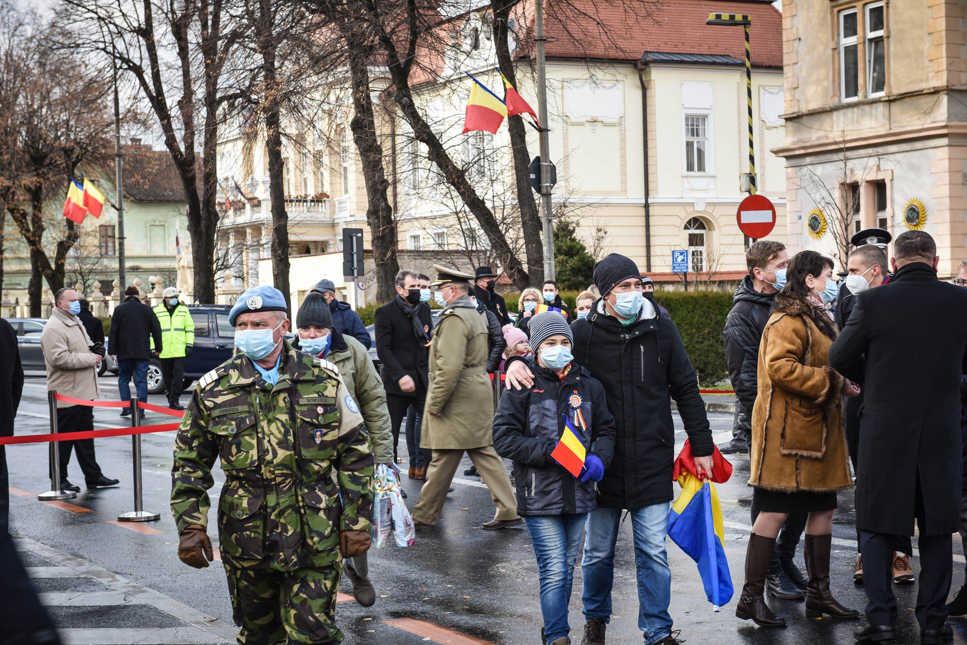 Fără parade militare, cu public restrâns și cu respectarea măsurilor de prevenire împotriva coronavirusului. Așa a fost sărbătorită Ziua Națională a României la Sibiu. Pe un vânt de decembrie, zeci de sibieni au venit în fața Cercului Militar pentru a se sărbători Ziua Națională a României și pentru a imortaliza fiecare moment în parte.