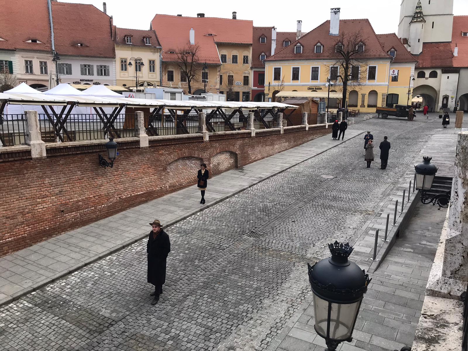 Centrul Sibiului a devenit în ultimele două zile decor pentru o nouă reclamă publicitară. Actori și figuranți îmbrăcați în costume de epocă filmează în Piața Mică a orașului pentru un spot publicitar pentru Scandia.