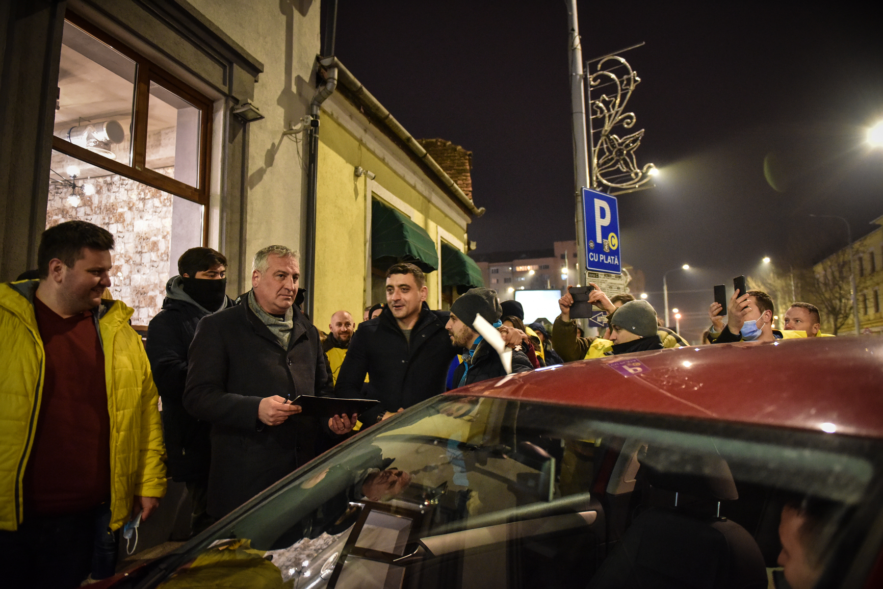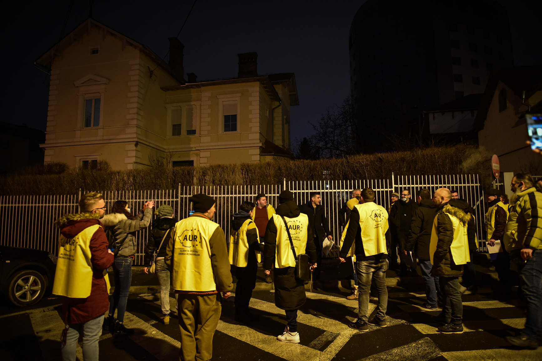 E luni seara, cerul ar vrea ba să ningă, ba să stea, iar timpul pare foarte prețios. George Simion, copreședintele AUR atât de discutat zilele acestea, schimbă câteva cuvinte în preajma cortului de partid și pornește în pas grăbit. Foarte grăbit. Din discuțiile care urmează în timp ce e flancat de cei doi parlamentari pe care AUR îi are la Sibiu, rezultă că traseul nu e clar stabilit. Dar graba e mare: Simion salută ”politicianește” oamenii care îi susțin privirea, le strânge mâna celor care lasă impresia deschiderii la un astfel de gest și îi pasează grupului de tineri din spate. ”Ați semnat? Semnați să îl dăm jos pe locatarul de la Cotroceni”, rostește cu emfază liderul de partid oricui îl ascultă, fără a mai completa că, în definitiv, acele semnături nu au niciun rost într-un demers parlamentar de suspendare a președintelui.