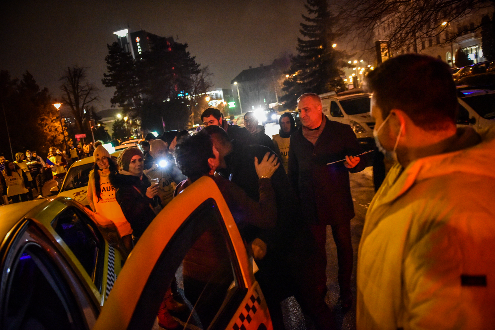 Tot cu pupături și îmbrățișări l-a întâmpinat pe Simion și o taximetristă, care la fel spune că a făcut parte din electoratul lui Iohannis. ”Am votat când aveam impresia că ține cu lumea. Dar după toate incidentele, toate protestele, toate nemulțumirile, nici măcar nu iasă să colaboreze... Efectiv nu-l interesează. Din ce se vede este chiar nul. Nu răspunde la nimic. Și, atunci, noi ce să mai credem? Că ține cu cine? Cu Bruxelles-ul sau cu noi?”.