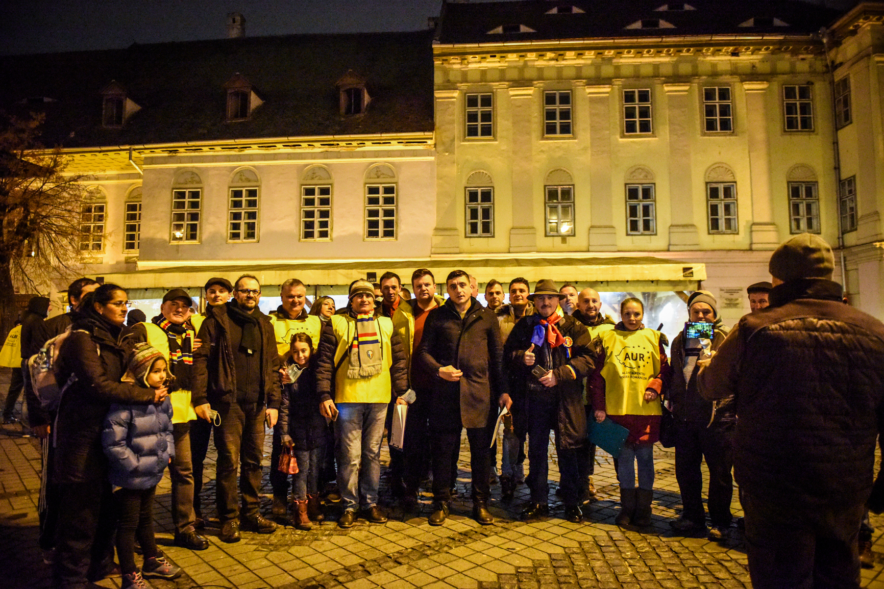 Într-un Sibiu care îl vota pe Klaus Iohannis drept primar în procente care atrăgeau atenția întregii țări în urmă cu câțiva ani, luni seară a parcat un autocar cu două niveluri. Din care a coborât unul din cei doi președinți AUR și un grup de susținători să strângă semnături pentru demiterea acelui Klaus Iohannis care acum este președinte al României. Un joc de imagine de o oră al celor de la AUR în al doilea mandat de președinte al lui Iohannis.