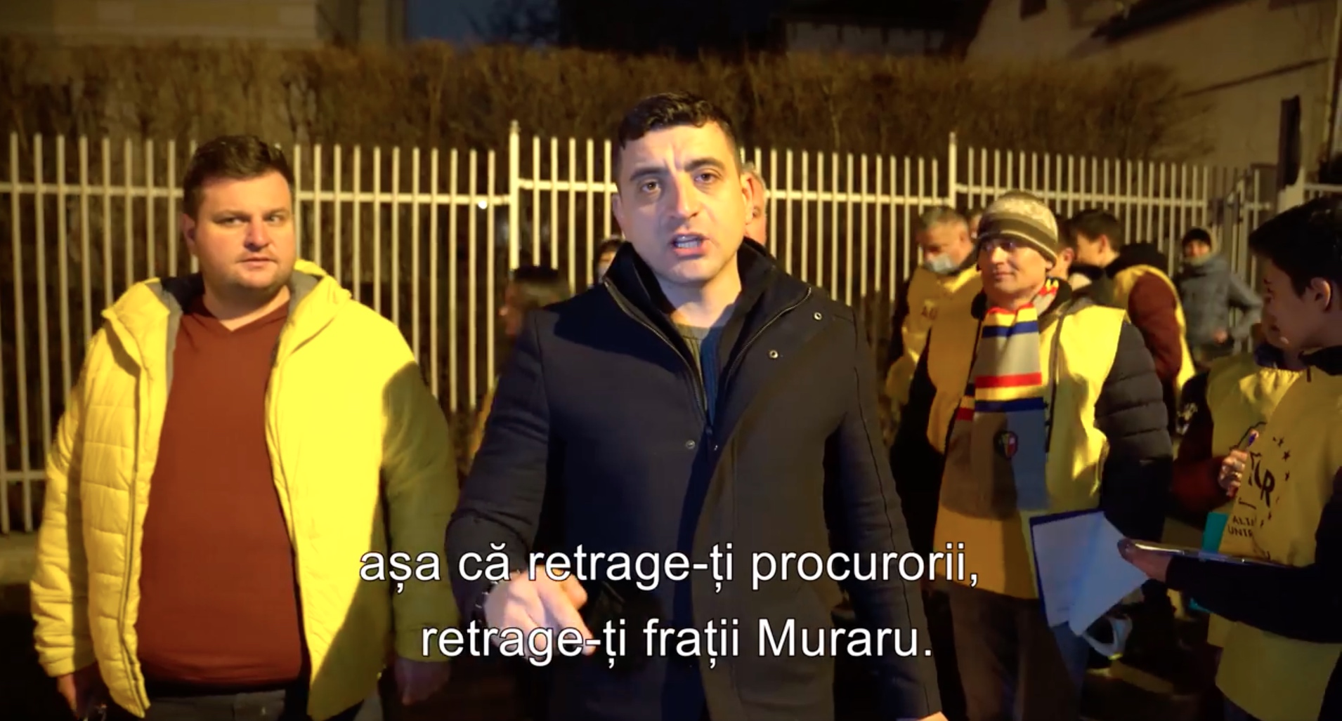 Aici, regia funcționează perfect: pe strada liniștită, membrii de partid amuțesc și strâng rândurile, în timp ce cu spatele la poartă și cu fața la camera de filmat pentru Facebook, Simion agită pumnul din care teatral atârnă o cruciuliță. Simion se victimizează, lăsând să se înțeleagă faptul că președintele țării ar fi asmuțit procurorii pe partidul ce-l conduce. Băiatul care filmează valsează în jurul liderului de partid pentru a-i surprinde acestuia cele mai bune unghiuri.