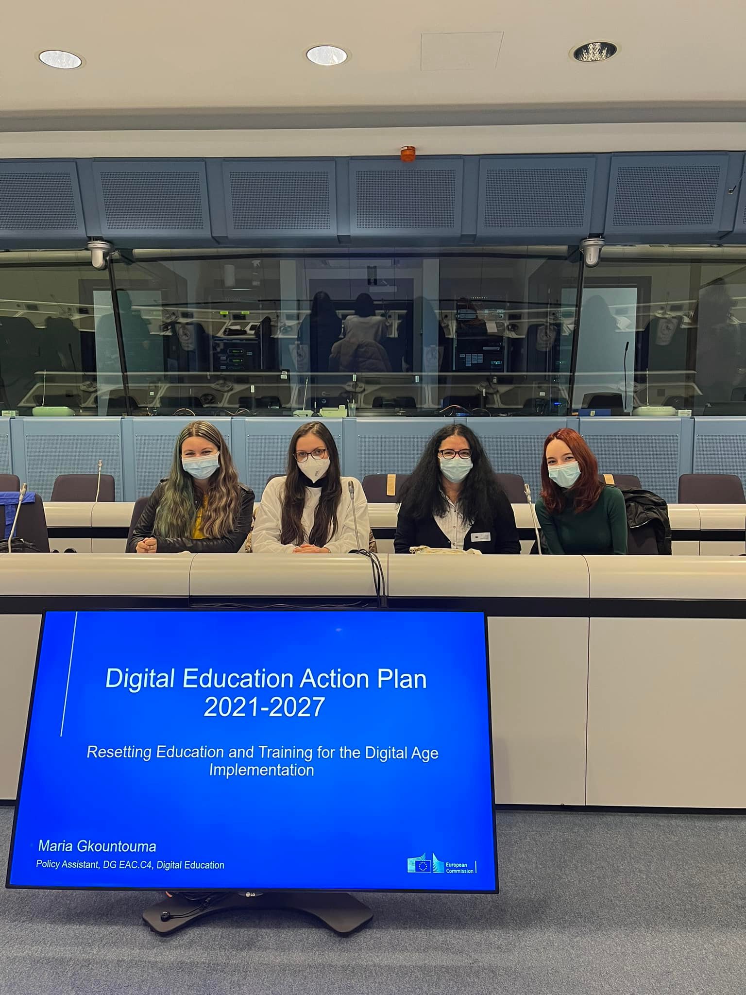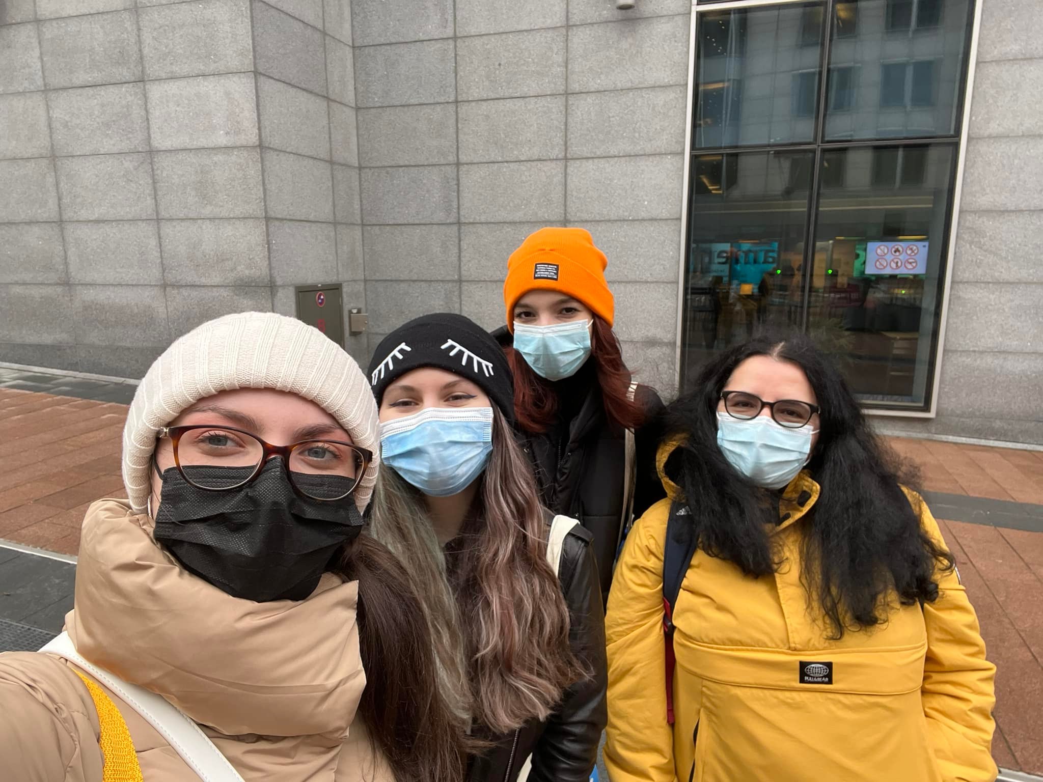 Antonia, Raluca și Cristina alături de prof. Paula Ciucur în vizita de la Bruxelles