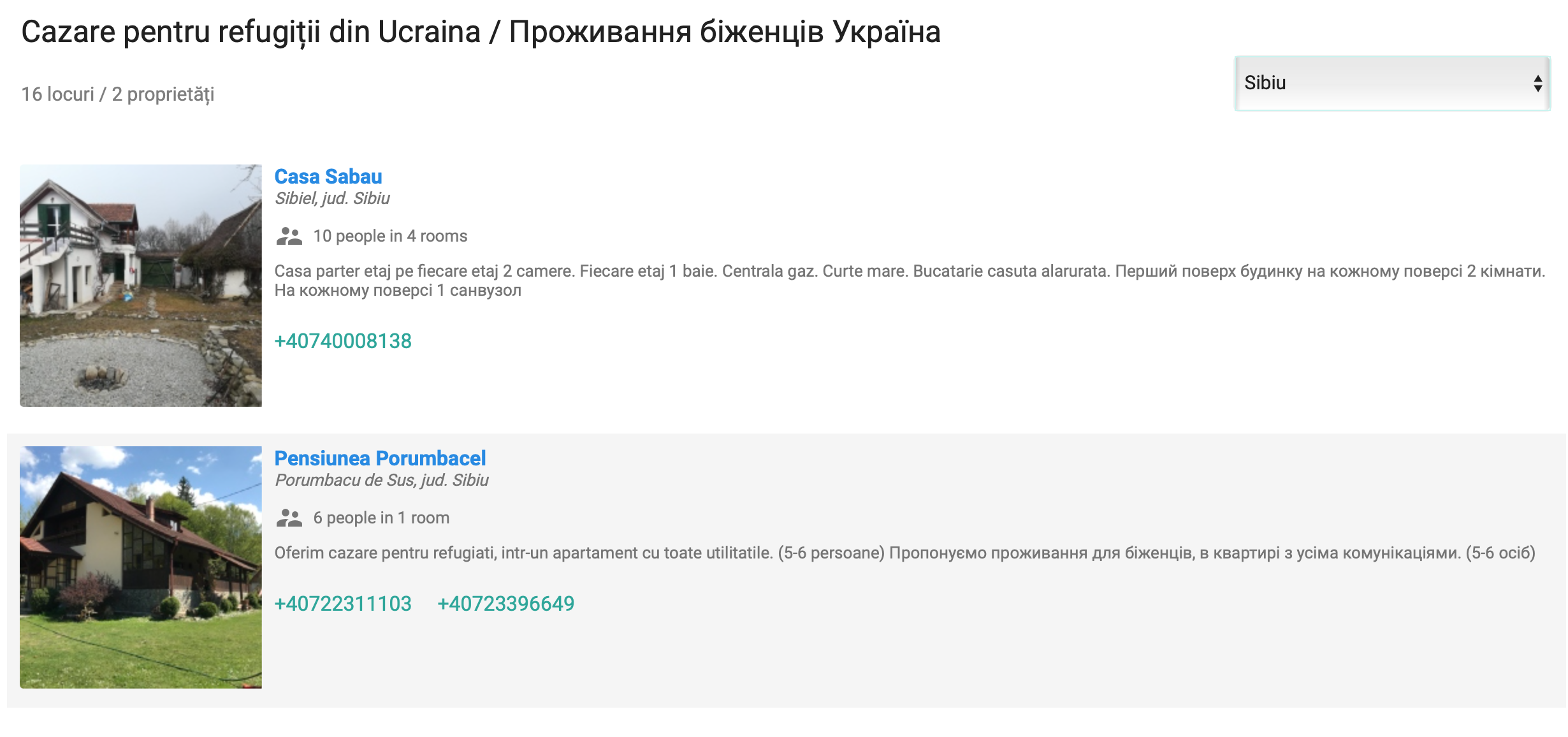 Pentru aproape fiecare tip de ajutor pe care vor să îl acorde, sibienii au la dispoziție grupuri de Facebook ori de Whatsapp pe care pot să anunțe cu ce pot să contribuie și când anume. Spre exemplu, acum există grupuri cu acces direct pe Whatsapp (nu este nevoie de solicitare, intrați pur și simplu) pentru cei care vor să ofere – transport refugiaților de la graniță la Sibiu sau în alte județe, spații de cazare sau voluntari pentru colectarea de donații. Mai jos, grupurile: